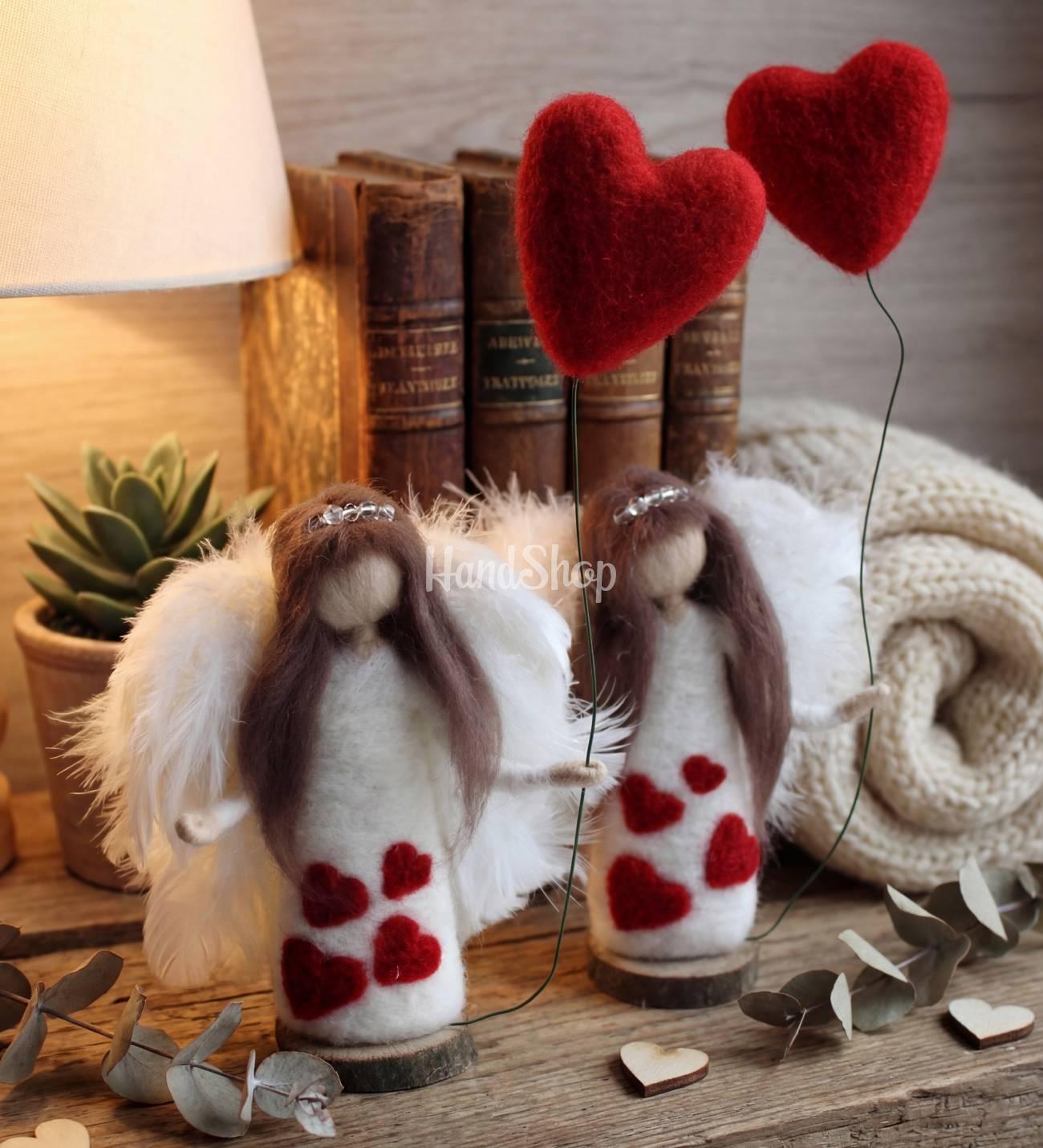 Особливості: ляльки ручної роботи – сувенірні ляльки валяння вовни на дерев’яній підставці. Авторська лялька валентинка з довгим волоссям у білій сукні та білими крилами з пір’я. Лялька до 10 см розміром – ідеальна для розміщення на полиці або столі. Ангелик тримає на проволці велике червоне сердечко – символ усіх закоханих. Лялька валентинка ангел одягнена в елегантну білу сукню, прикрашену червоними сердечками. Довге волосся додає ляльці особливої чарівності. Лялька ангелик закріплена на дерев’яній підставці, що надає їй стабільність та естетичну завершеність. Авторська лялька ангел валентинка тримає на проволці велике червоне сердечко – символ усіх закоханих, який додає виробу ще більшої романтичної нотки. Ця лялька стане чудовим подарунком до Дня святого Валентина, річниці або просто як знак уваги для вашої коханої людини. Вона привнесе тепло і ніжність у будь-яку кімнату, а також створить атмосферу любові та гармонії.