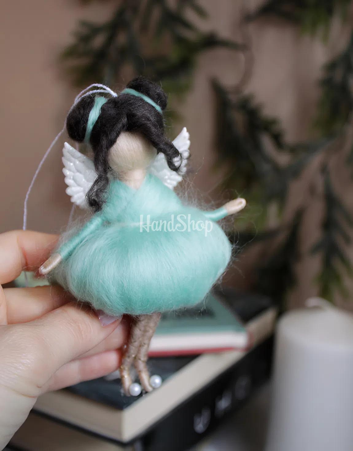 Особливості: різдвяні ляльки валяння вовни – новорічна підвіска сувенір своїми руками невеликого розміру на вашу ялинку 2026. Іграшка підвіска янголятко балеринка з білими крильцями і чорним волоссям, стане чудовим акцентом на вашій ялинці у 2026 році. Заввишки до 14 см, кожна лялька – це не просто прикраса, а справжній витвір мистецтва, виконаний вручну в найкращих традиціях валяння. Лялька виконана в яскравій бірюзовій пишній сукні, а підвісна нитка дозволяє зручно розмістити її на ялинці або використовувати як милий подарунковий сувенір для ваших близьких. Ця новорічна лялька підвіска – ідеальний варіант для тих, хто шукає оригінальну новорічну прикрасу, яка принесе в дім атмосферу тепла, ніжності та чарівності. Даруйте радість своїм рідним і друзям з цими чудовими, особливими різдвяними підвісками-ляльками, які, без сумніву, стануть частиною вашого святкового настрою! Маленькою із вовни лялькою можна прикрашати дитячий інтер’єр, вішати в машині. Подаруйте частинку магії з нашими ангеликами феями – для ваших коханих, для вашої ялинки, для особливих моментів у 2026 році! Новорічна дитяча лялька балерина підвіска звалена з вовни порадує і зачарує не лише дітей, а й дорослих!