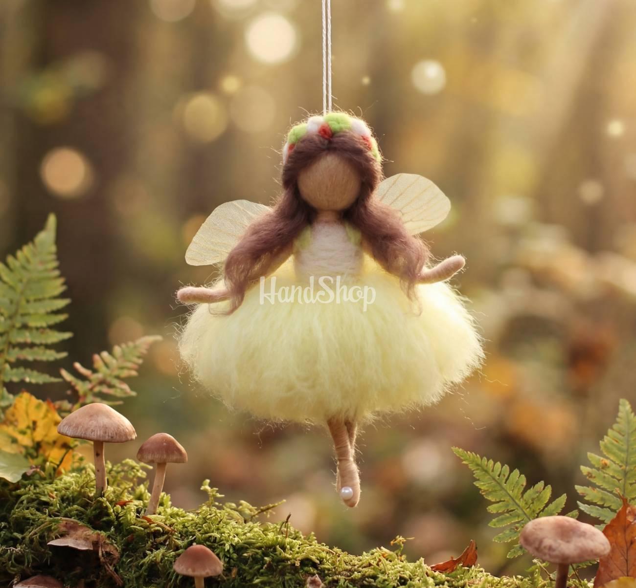 Особливості: ляльки валяння вовни – дитячі ляльки своїми руками невеликого розміру до 12 см – сувенір підвіска веснянка. Дитяча лялька іграшкова виконана з вовни мериноса в милому образі лялечки феї з прозорими крилами на підвісній ниточці. Лялька підвіска ангел із вовни веснянка з квітковим обідкоми та ззаду з ангельськими крильцями, що надає їй легкості і казковості. Лялька з вовни зроблена у вигляді весняного сувеніру підвіски на ниточці. Лялька валяна з вовни в пишній жовтій святковій сукні з довгим каштановим волоссям. Маленькою із вовни лялькою янголем можна прикрашати дитячий інтер’єр, вішати в машині. Цей сувенір веснянка лялька – не лише красива підвіска, але й унікальний подарунок для ваших близьких. Вона може стати чудовим доповненням до святкових декорацій на 8 березня, або просто створити весняну атмосферу в будь-якому куточку вашого дому. Лялька веснянка стане чудовим подарунком для тих, хто цінує ручну працю та мініатюрну красу. Міні ляльки своїми руками – лялька з вовни – сувенір та талісман рідним дівчатам! Дитяча лялька у пишній сукні – ляльки звалені з вовни порадує та зачарує не лише дітей, а й дорослих!