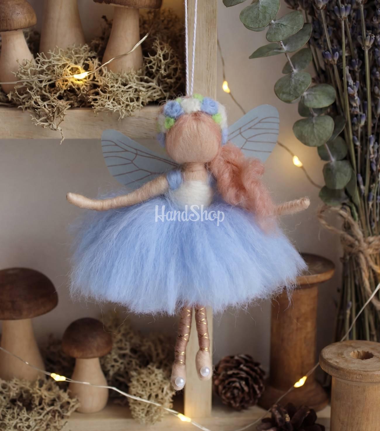 Особливості: ляльки валяння вовни – дитячі ляльки своїми руками невеликого розміру до 12 см – сувенір підвіска веснянка. Дитяча лялька іграшкова виконана з вовни мериноса в милому образі лялечки феї з прозорими крилами на підвісній ниточці. Лялька підвіска ангел із вовни веснянка з квітковим обідкоми та ззаду з ангельськими крильцями, що надає їй легкості і казковості. Лялька з вовни зроблена у вигляді весняного сувеніру підвіски на ниточці. Лялька валяна з вовни в пишній блакитній святковій сукні з довгим білявим волоссям зав’язаним у хвостик на один бік. Маленькою із вовни лялькою янголем можна прикрашати дитячий інтер’єр, вішати в машині. Цей сувенір веснянка лялька – не лише красива підвіска, але й унікальний подарунок для ваших близьких. Вона може стати чудовим доповненням до святкових декорацій на 8 березня, або просто створити весняну атмосферу в будь-якому куточку вашого дому. Лялька веснянка стане чудовим подарунком для тих, хто цінує ручну працю та мініатюрну красу. Міні ляльки своїми руками – лялька з вовни – сувенір та талісман рідним дівчатам! Дитяча лялька у пишній сукні – ляльки звалені з вовни порадує та зачарує не лише дітей, а й дорослих!
