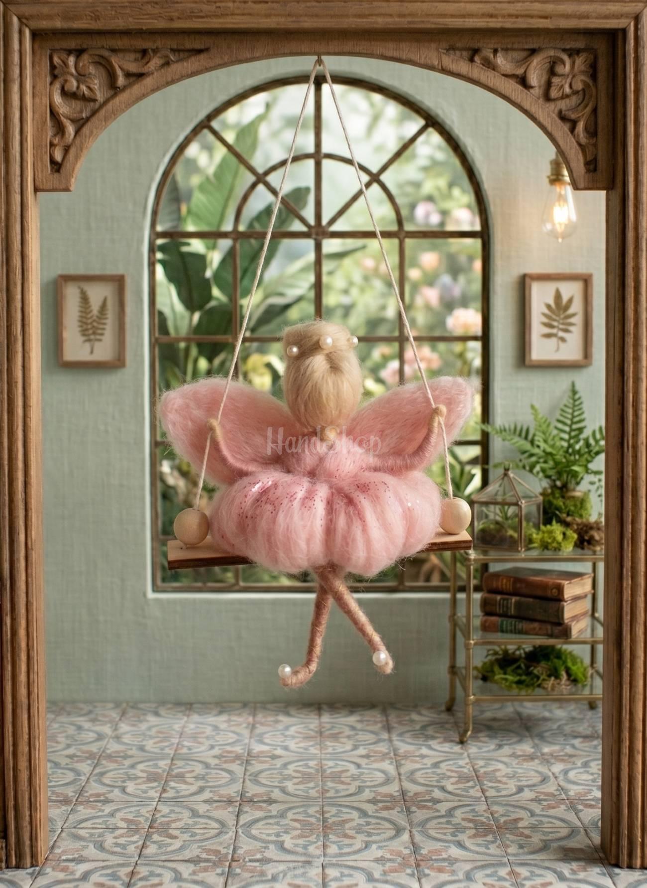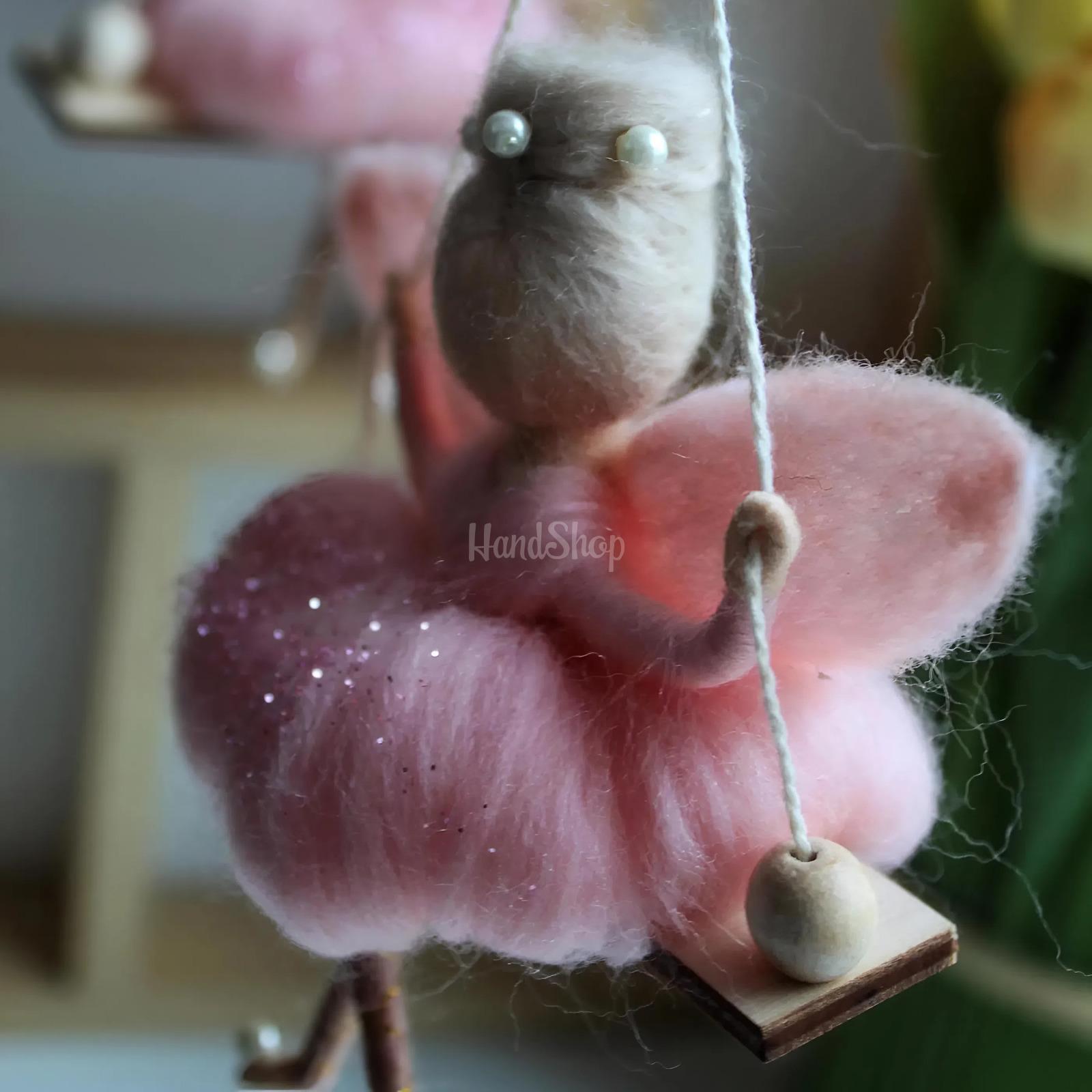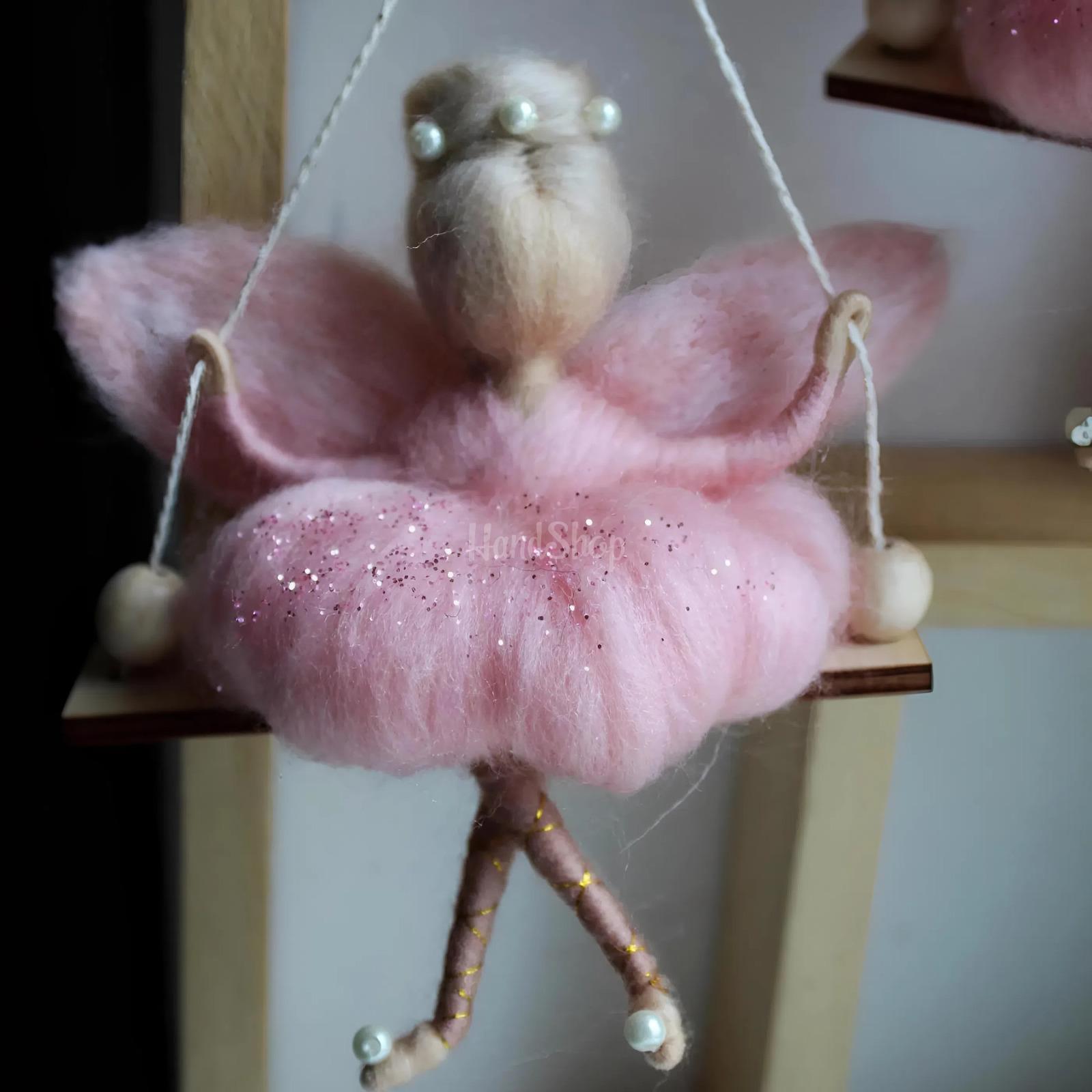 Особливості: ляльки валяння вовни – дитяча підвіска сувенір міні лялька своїми руками невеликого розміру. Міні лялька-підвіска балерина ангел на дерев’яній гойдалці – це витончений сувенір ручної роботи, що поєднує ніжність дитячої казки та естетику авторського мистецтва. Лялька створена у техніці валяння з натуральної шерсті мериноса, завдяки чому вона має м’яку текстуру, теплу енергетику та особливий шарм. Цей чарівний образ втілює милу білявку-балеринку, яка нагадує маленьку фею або ангела. Вона сидить на дерев’яній гойдалці, ніби застигла у моменті казки. Її ніжний вигляд підкреслює пишна рожева сукня з блискітками, акуратна білява гулька та делікатні рожеві ангельські крильця за спиною. Кожна деталь продумана до дрібниць і виконана вручну, що робить кожну ляльку унікальною. Компактний розмір ляльки ангелика дозволяє використовувати її як підвіску – для декору дитячої кімнати, прикраси автомобіля, новорічної ялинки або навіть як милий аксесуар для сумки чи рюкзака. Вона додає простору затишку, легкості та казкового настрою. Ця валяна лялька у рожевій сукні – не просто іграшка, а справжній сувенір із душею. Вона стане чудовим подарунком для дівчинки, подруги, мами на День матері чи коханої людини. Такий маленький талісман символізує ніжність, турботу та любов, нагадуючи про важливі моменти і близьких людей. Лялька балерина ангел на гойдалці – це маленьке диво, яке здатне подарувати великі емоції та прикрасити будь-який день.