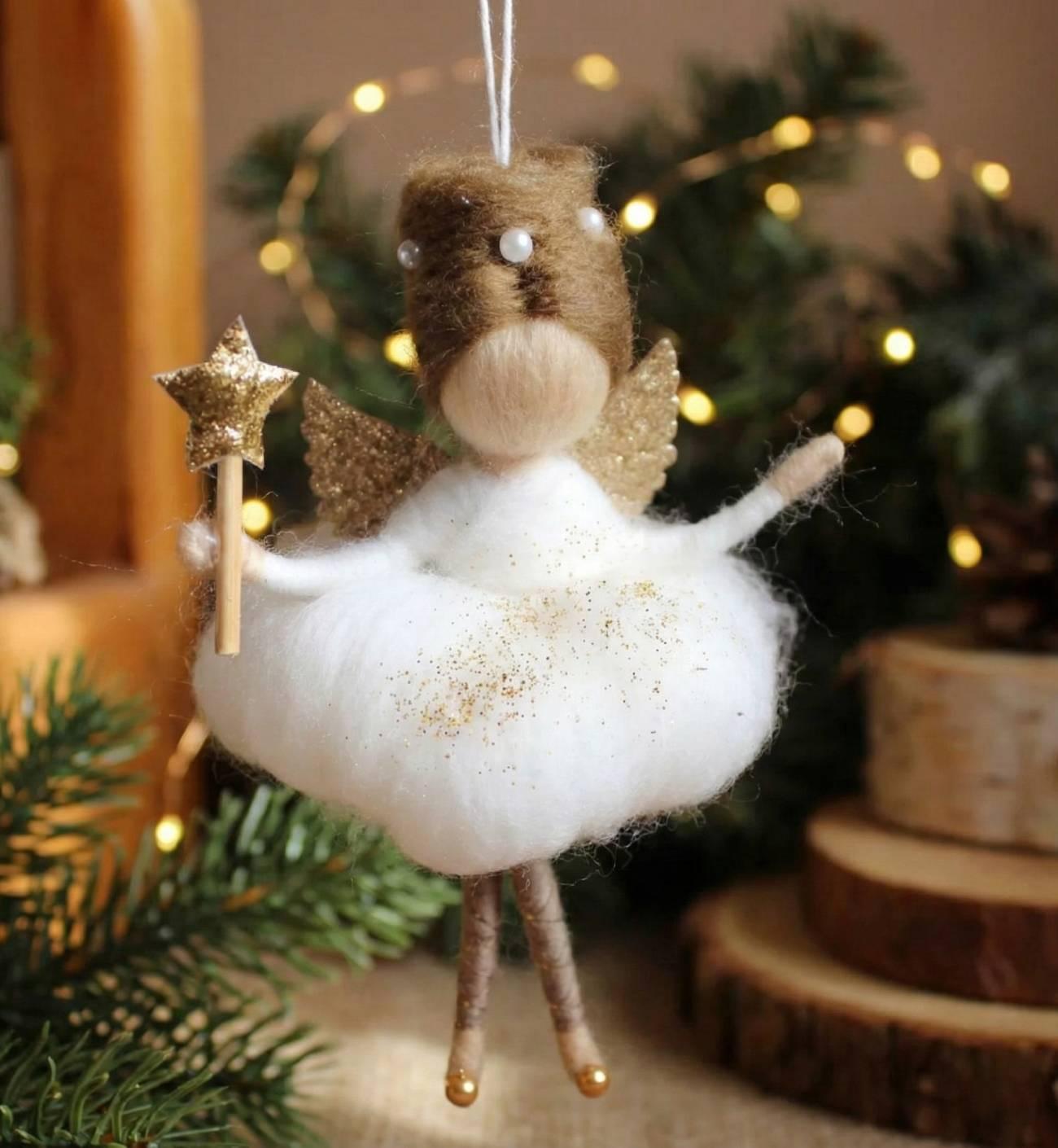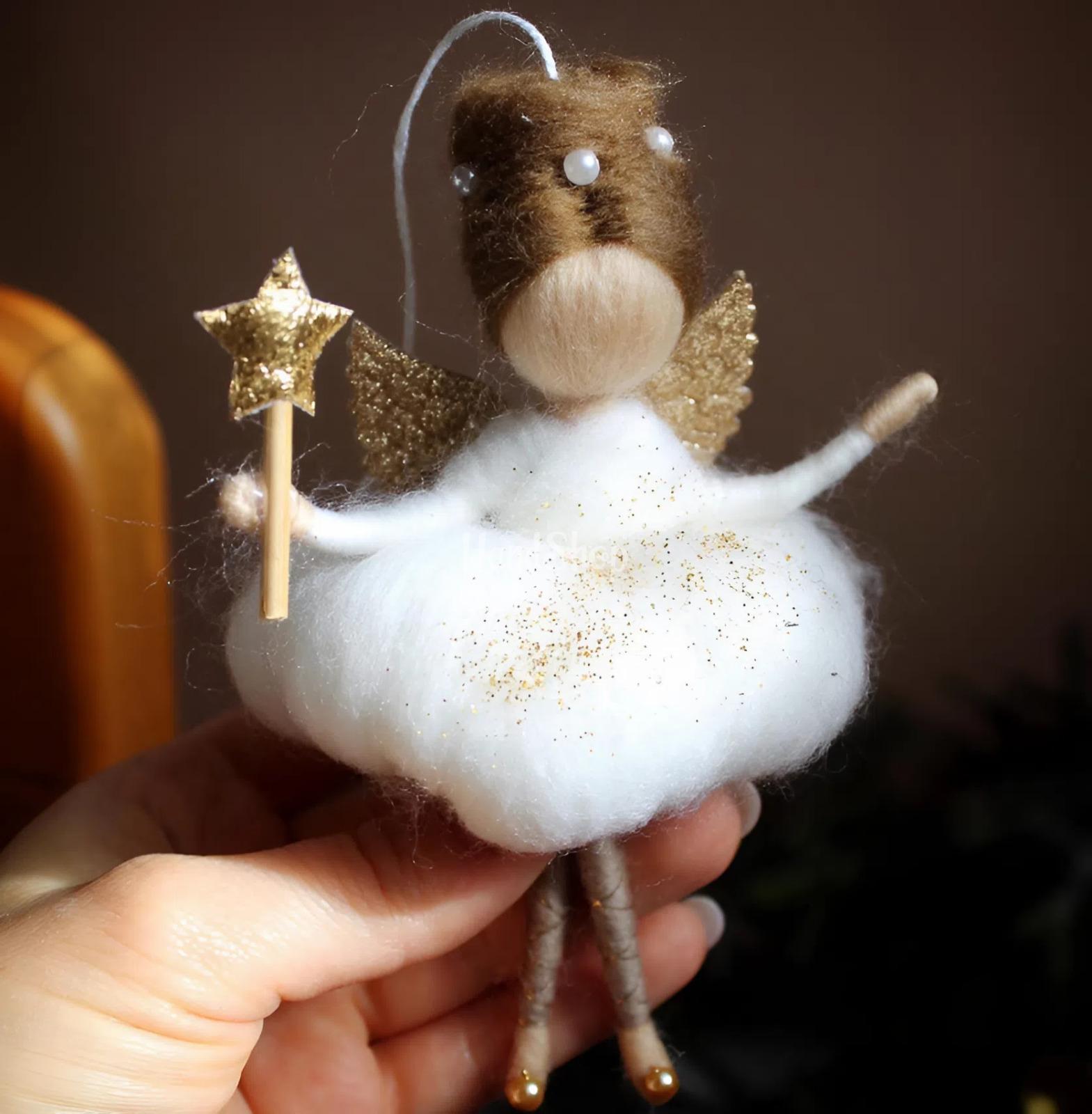 Особливості: новорічні іграшки ляльки – ляльки валяння вовни своїми руками невеликого розміру до 12 см. Дитяча лялька іграшкова – новорічна лялька ангел із вовни виконана у милому святковому новорічному образі ангелочка лялька на нитці. Лялька підвіска ангел з шерсті ангел – валяння з шерсті ляльки ззаду з ангельськими крильцями. Лялька ангелик з шерсті зроблена у вигляді різдвяного сувеніру підвіски на ниточці на новорічну ялинку 2026, який стане справжньою зіркою вашої ялинки! Наша авторська різдвяна лялька ангел з натуральної вовни – ідеальна підвіска для ялинки 2026 або чудовий сувенір для ваших близьких. Висотою всього 9 см, вона виготовлена вручну з великою любов’ю та увагою до деталей, щоб подарувати вашому дому неповторну атмосферу свята. Новорічну ляльку валяну з вовни у білій сукні можна використовувати як подарункові сувеніри підвіски вашим коханим та рідним. Маленькою з вовни лялькою можна прикрашати ялинку та дитячий інтер’єр, вішати у машині. Ангелик – не просто сувенір, а справжній символ добра і надії, який буде радувати ще довгі роки. Це ідеальний подарунок для тих, хто любить оригінальні та душевні презенти. Така лялька-ангел принесе удачу і благословення в новому році! Прикрасьте свій дім і подаруйте святкову магію з цією милою, ніжною лялькою ангелом! Вона стане частиною ваших новорічних традицій, даруючи тепло і радість кожного разу, коли ви на неї поглянете.