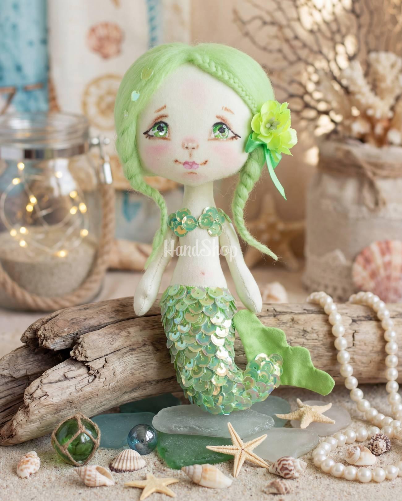 Особливості: дитячі ляльки ручної роботи – міні лялька своїми руками русалонька зі зростом 15 см. Лялька маленька русалонька з салатовим довгим волоссям, заплетеним у дві косички. Ігрова дитяча лялька виконана в образі казкової ляльки русалки з зачіскою косички, що додає їй ніжності, а її хвіст виконаний з блискучих салатових паєток, що переливаються на світлі. Міні лялечка з красивим волоссям та великою салатовою квіткою ручної роботи, що гармонійно доповнює її образ. Лялечка своїми руками русалонька стоїть лише з опорою! Дитячі ляльки для дівчаток сувеніри русалки – в індивідуальному екземплярі! Ця ігрова дитяча лялька русалка не лише стане улюбленою іграшкою вашої дитини, але й втілить у життя найкращі морські фантазії. Дозвольте вашій дитині зануритися у світ казки та мрій разом з нашою міні лялечкою русалонькою! Ця маленька русалочка стане чудовим аксесуаром для колекції чи незабутнім подарунком для вашої дитини. Ідеально підходить для гри або декору дитячої кімнати. Створена з любов’ю та увагою до деталей, вона подарує радість і захоплення кожному власнику!