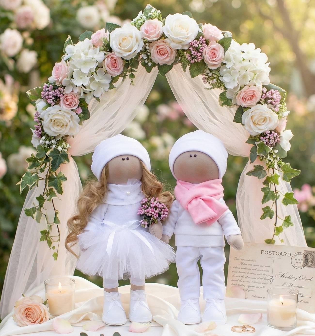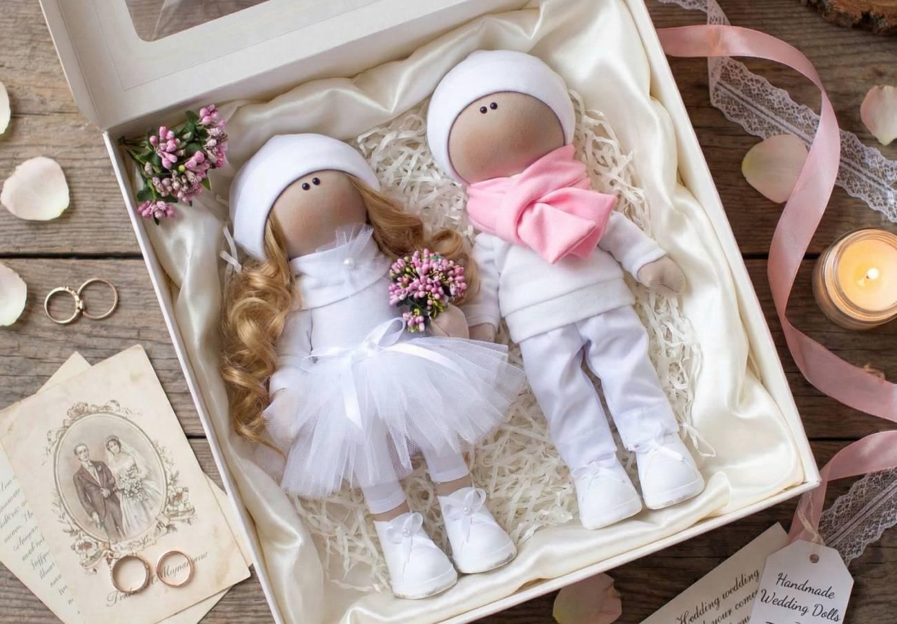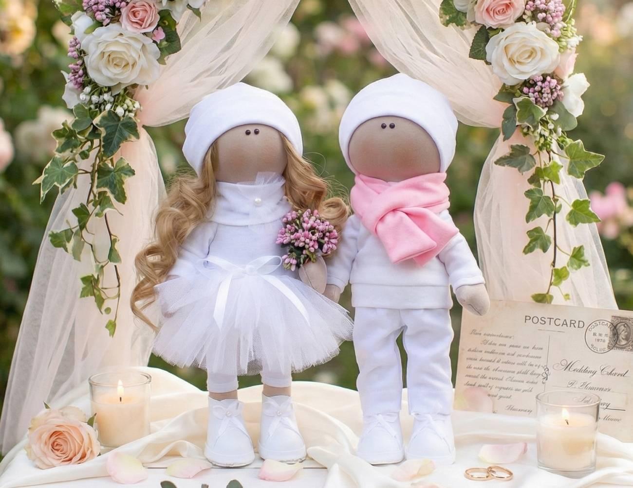 Особливості: ляльки весільні пари – авторські текстильні ляльки ручної роботи по 37 см у стильному образі нареченого та нареченого. Весільна пара ляльок – це чудовий і оригінальний спосіб відзначити один з найважливіших моментів у житті молодят! Авторські текстильні ляльки висотою 37 см, створені вручну, із великим увагою до деталей, у стильному весільному образі нареченого та нареченої. Це не просто декоративні фігурки, а справжні витвори мистецтва, які додають елегантності та чарівності будь-якому святу. Наречена лялька тільда одягнена в розкішну білу сукню, що ідеально підкреслює її витонченість та красу. В її руках – чудовий букетик штучних квітів, який додає образу ще більше романтики та ніжності. Вона виглядає як справжня королева свята! Наречений лялька тільжа має стильний і сучасний вигляд: він одягнений у білий светр, класичні штани та чорний метелик, що підкреслює елегантність і бездоганний смак. Його образ чудово доповнює образ нареченої, створюючи гармонійну пару, що символізує єдність і кохання. Ці весільні ляльки стоїть самостійно, що дозволяє їм бути чудовим елементом декору на весільному святі чи прикрасою в будинку. Одяг на ляльках не знімається, що додає їм додаткової естетичної цілісності і гарантує, що вони збережуть свій вигляд протягом багатьох років. Весільна пара ляльок – це не тільки незабутній сувенір, але й чудовий символ любові, який буде нагадувати молодятам про важливий день їхнього життя. Вибираючи ці ляльки, ви обираєте не просто подарунок, а справжній витвір мистецтва, який принесе радість і емоції на довгі роки. Ідеальний подарунок для молодят – вишуканий, оригінальний і незабутній! Авторські текстильні ляльки ручної роботи будуть чудовим сувеніром вашим рідним та близьким з України!