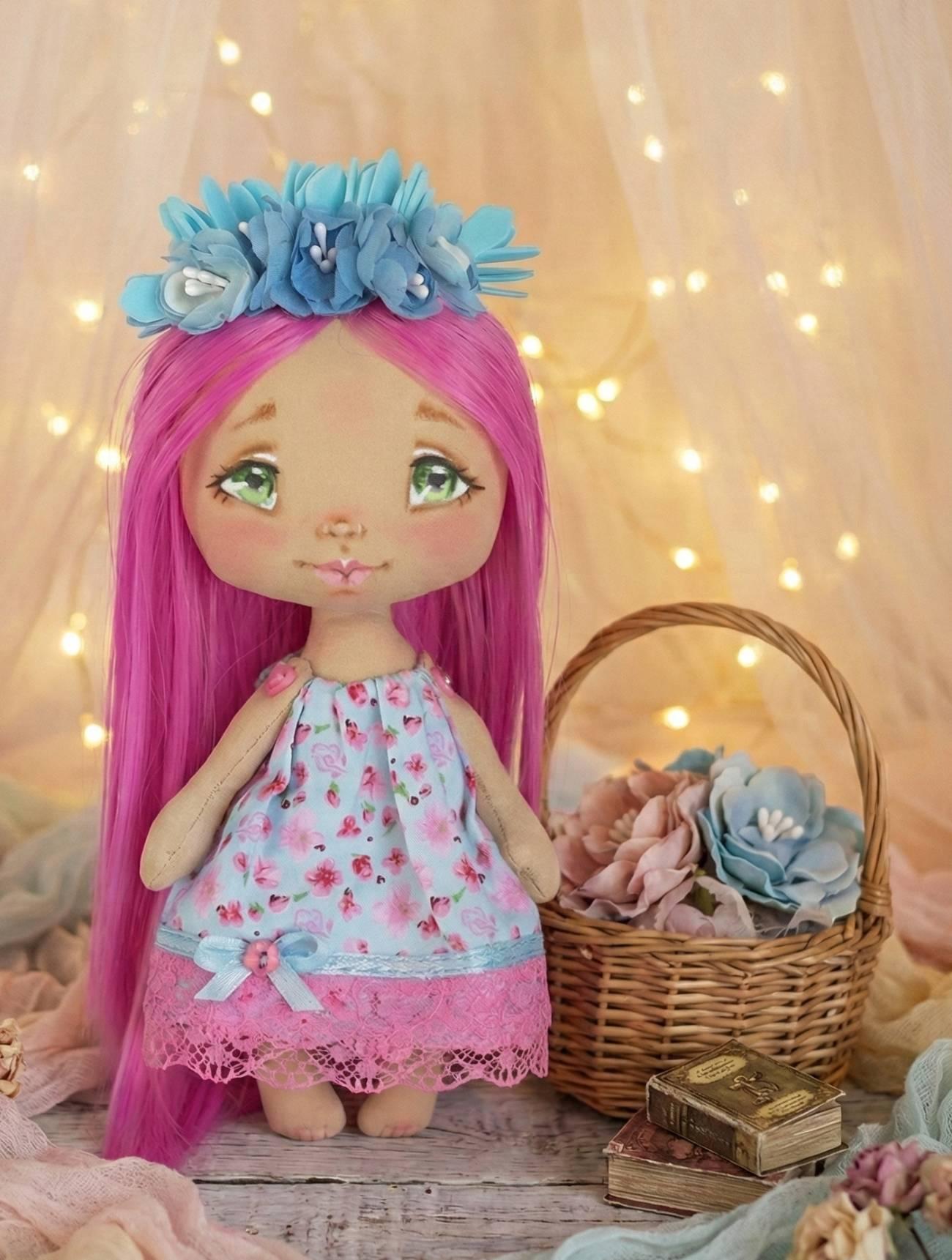 Особливості: дитячі ляльки ручної роботи – міні лялька своїми руками зі зросом до 14 см. Лялька маленька з довгим рожевим волоссям – дитяча лялька іграшкова виконана в образі красивої ляльки принцеси. Міні лялечка з прямим довгим волоссям в ніжній блакитно-рожевій сукні та з квітковим принтом та мереживом. Волосся ляльки прикрашене віночком з блакитних квітов ручної роботи, що надає їй ще більше чарівності та витонченості. У міні лялечці – одяг та квіти НЕ знімаються,що робить її не лише чудовим елементом декору, але й довговічною іграшкою, яка збережеться в первозданному вигляді на довгі роки. Лялечка своїми руками стоїть лише з опорою! Дитячі ляльки для дівчаток сувеніри – в індивідуальному екземплярі! Міні лялечки своїми руками з рожевим волоссям – приємні святкові сувеніри коханим! Дитячі ляльки – казково та мило! Ця міні-лялька з довним волоссям стане чудовим подарунком для дітей, які полюбляють казкових персонажів, або для колекціонерів ляльок, що шукають унікальні й оригінальні екземпляри. Міні-лялька у квітковій сукні – це не просто іграшка, а справжня принцеса, яка принесе радість і тепло в будь-який дім!