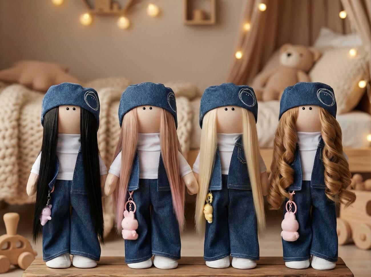 Особливості: інтер’єрна лялька – велика авторська інтер’єрна лялька 37 см у стильному образі юної дівчинки модниці в джинсовому одязі. Познайомтесь із чарівною інтер’єрною лялькою, яка стане чудовою прикрасою вашого дому. Це велика авторська лялька висотою 37 см, створена у вигляді юної дівчинки модниці, одягненої в стильний джинсовий комплект. Лялька виконана в техніці Тільда, з чудовим увагою до деталей. Ігрова лялька вдягнена в білу кофтинку-гольф, елегантні джинси-кльош та жилетку, що додають їй неповторного шарму. Її стиль доповнює джинсова кепка і довге волосся, яке виглядає дуже натурально. А щоб вигляд був завершений, лялька має милу різнокольорову підвіску – популярну Лабубу. Усі частини тіла ляльки тільда – ніжки та ручки – гнучкі, що дозволяє їй стояти, сидіти та навіть виконувати шпагат без жодної опори. Одежа та туфельки – незнімні, що робить ляльку ще більш стійкою та витривалою у використанні. Ця лялька з Лабубу стане чудовим доповненням до вашого інтер’єру, привносячи нотки затишку та стилю в будь-який простір. Її авторська робота та увага до деталей роблять її не просто іграшкою, а справжнім мистецьким об’єктом. Відмінно підходить як подарунок або оригінальний елемент декору для дому чи офісу. Підкресліть свій інтер’єр з цією неймовірною лялькою з іграшкою Labubu (Лабубу), яка приносить тепло, стиль і гармонію!