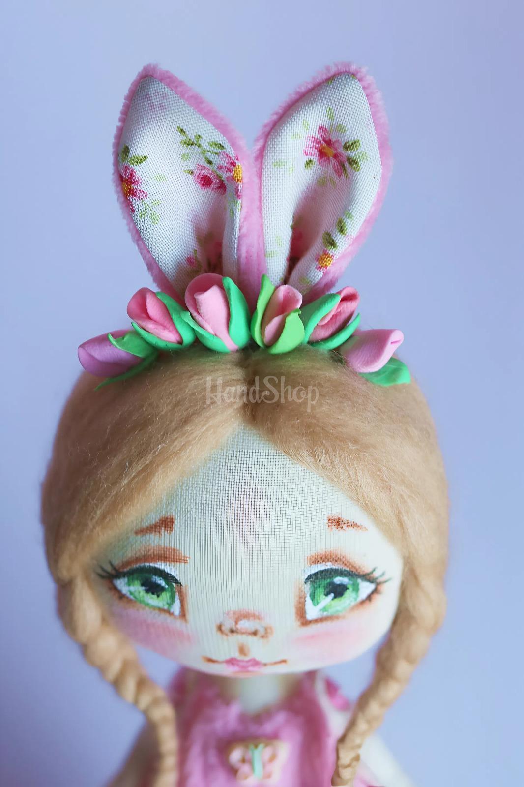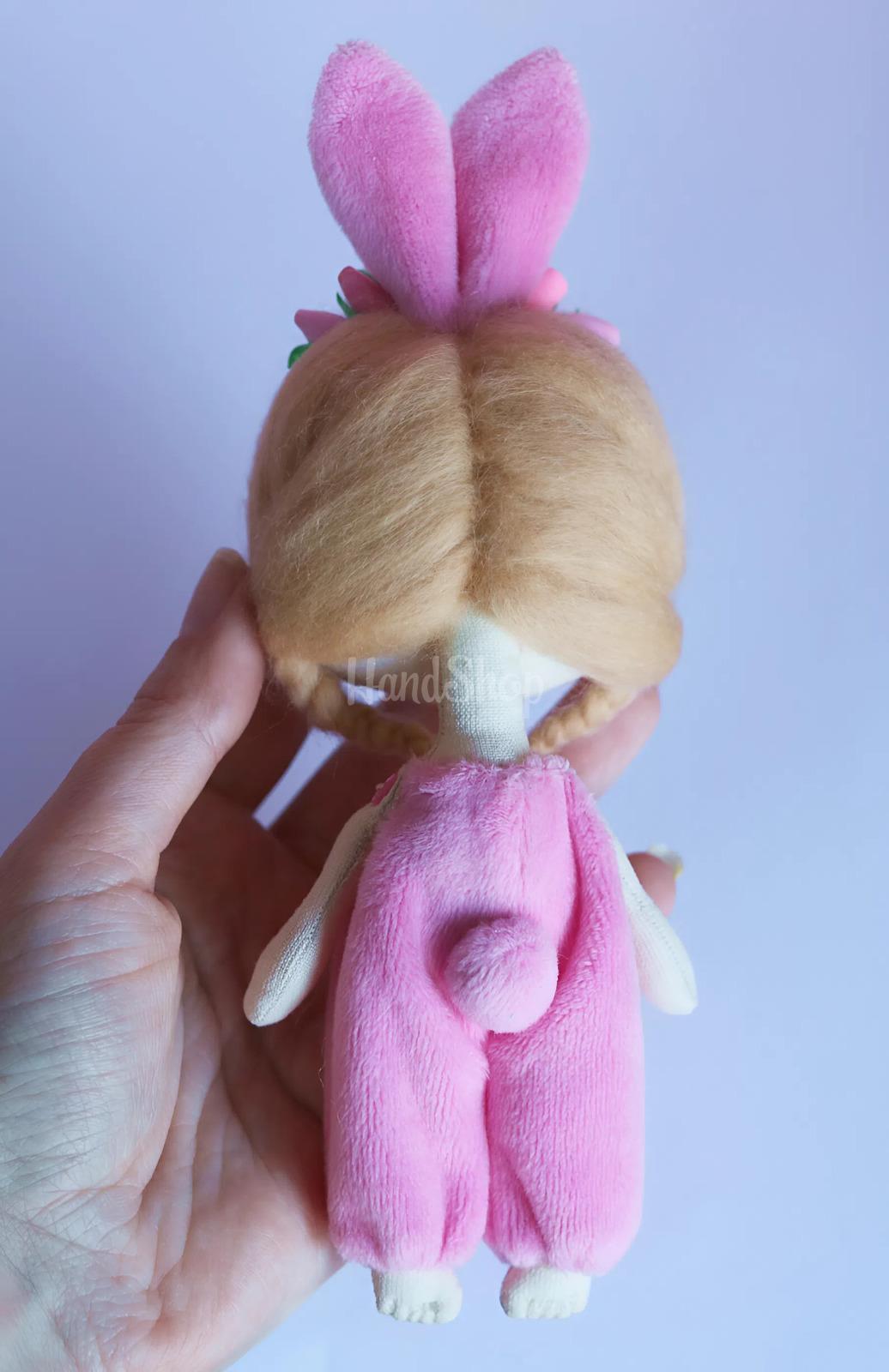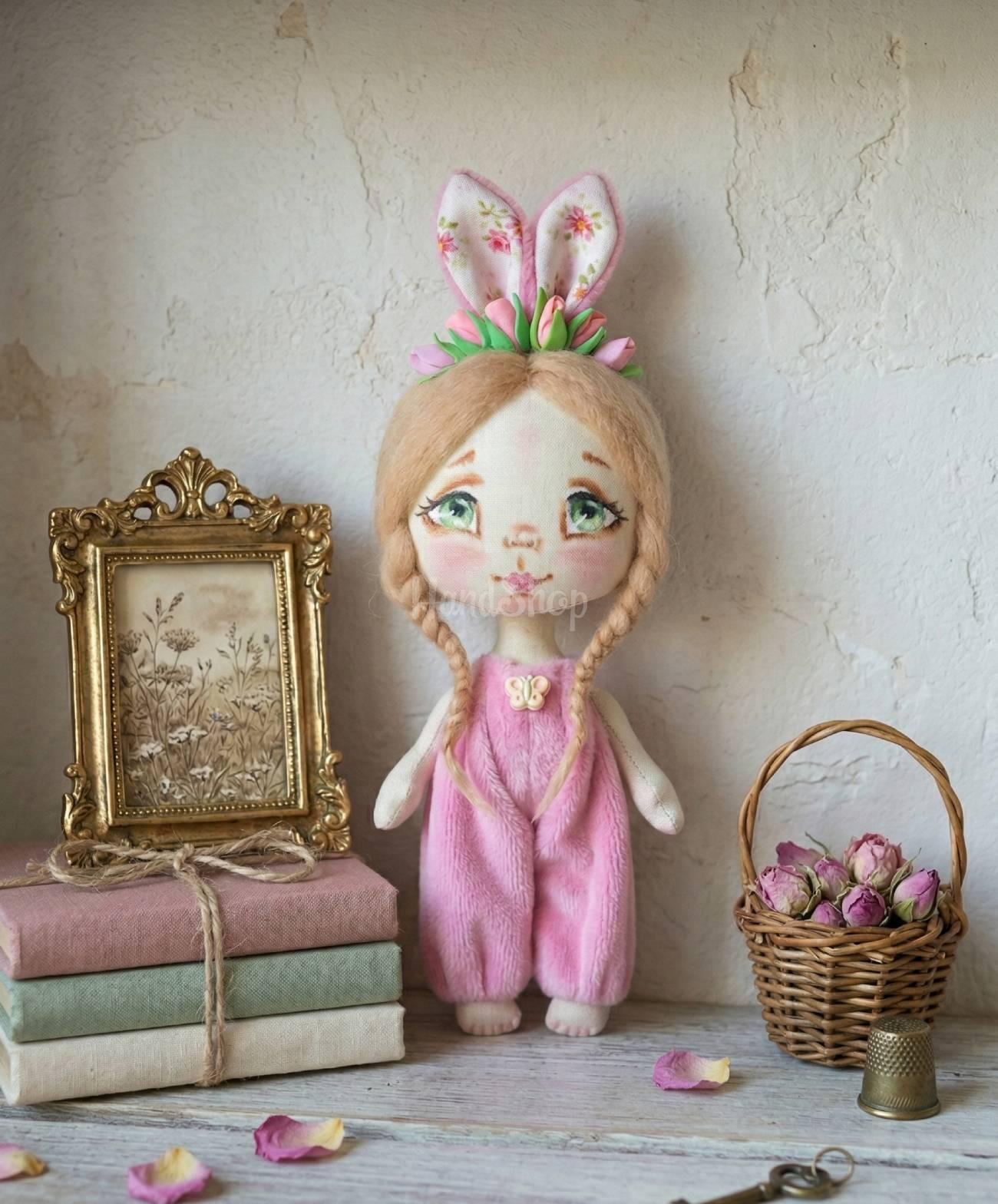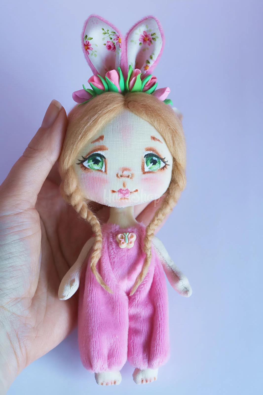 Особливості: дитячі ляльки ручної роботи – текстильна міні лялька своїми руками зі зростом до 15 см в образі милої дівчинки-зайки у яскравому весняному стилі. Текстильна лялечка одягнена в ніжний рожевий плюшевий комбінезон, прикрашений маленьким рожевим метеликом, а голову оздоблює віночок з тюльпанів ручної ліпки. Розписне личко з акуратними рисами та дві чарівні косички додають іграшці особливого характеру й теплоти. Комбінезон у лялечки не знімається – це робить ляльку більш міцною, практичною та зручною для щоденних ігор. Міні-лялька може стояти з опорою, що дозволяє створювати різні пози та цікаві ігрові сюжети. Кожна авторська текстильна зайка – в індивідуальному екземплярі. Без повторів. Без масового виробництва. Лише ручна робота, увага до деталей і щира любов до творчості. Це маленька лялька з великим серцем, яка стане улюбленою з першого погляду. Наша весняна лялька з тюльпанами – ідеально підходить для творчих ігор і колекціонування.