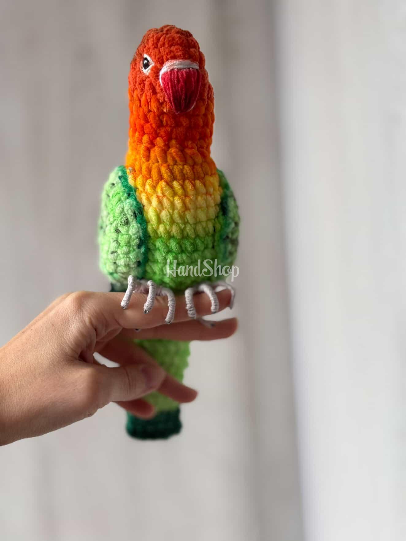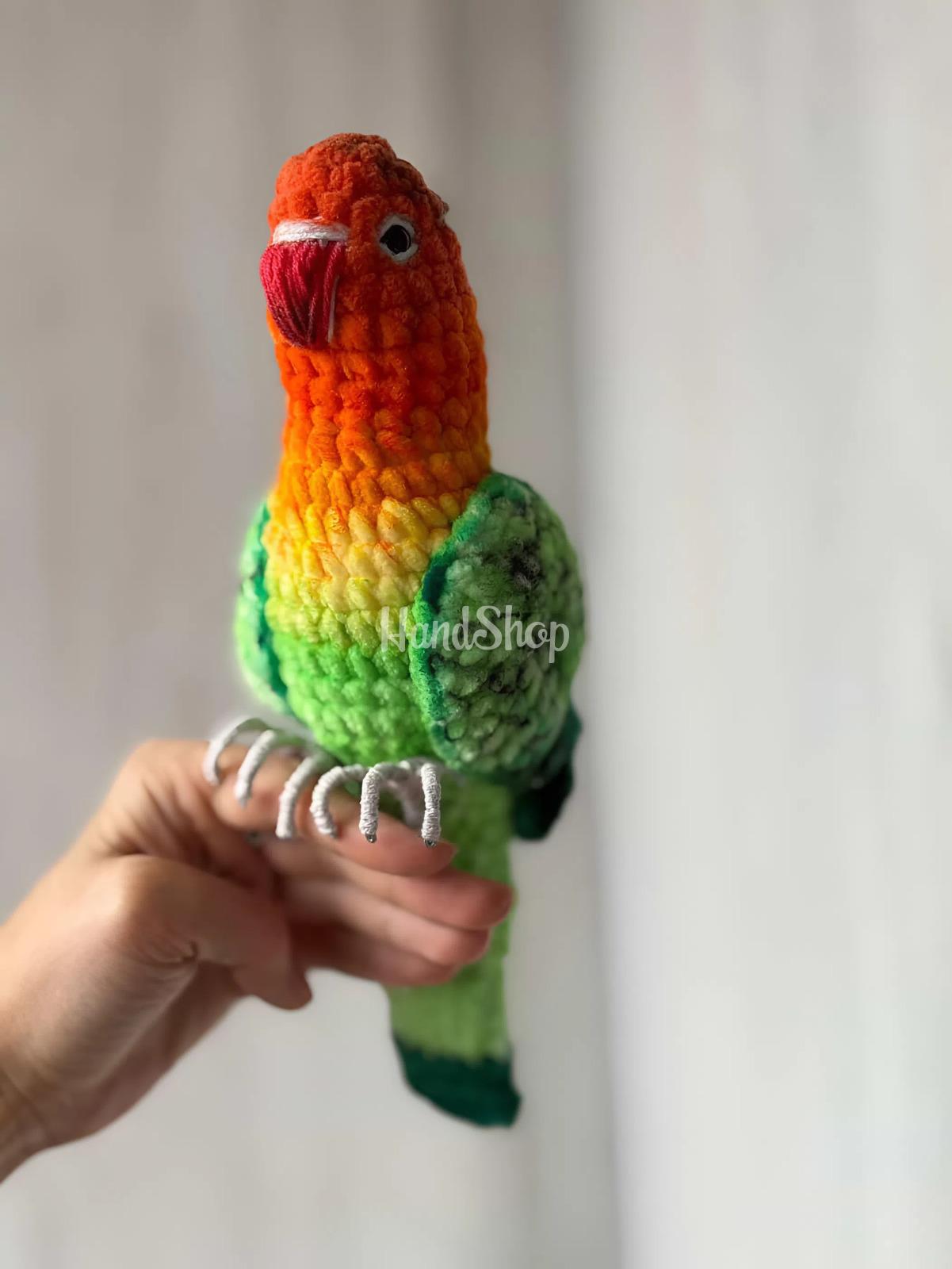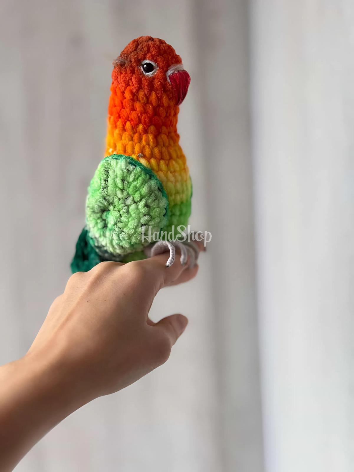Особливості: м’які в’язані іграшки своїми руками – великий в’язаний різнокольоровий папуга 26 см породи нерозлучник. Іграшка папуга зроблена вручну з найкращих матеріалів – плюшева пряжа. Подаруйте дитині тепло та радість разом із чарівним В’язаний папуга породи нерозлучник не лише розважає, а й допомагає розвивати уяву, тактильні відчуття та емоційну прив’язаність дитини. в’язаним папужкою, створеним вручну з любов’ю. Ця м’яка іграшка стане улюбленим другом для ігор, обіймів і солодких снів. Цей милий різнокольоровий папужка нерозлучник створений вручну, щоб дарувати дітям радість, затишок і відчуття турботи. Завдяки м’якій плюшевій пряжі іграшка надзвичайно приємна на дотик і безпечна для дитячих ручок. Яскраві кольори роблять папужку веселим та життєрадісним, а оптимальний розмір до 26 см – ідеально підходить для обіймів, ігор та прогулянок. Його зручно брати із собою в ліжечко, у візок або в подорож. Іграшка в’язаний папуга нерозлучник – ідеальний подарунок на день народження, хрестини, свято або просто як приємний сюрприз для малечі. Цей різнокольоровий папужка додасть радості та яскравих емоцій у кожен дитячий день! Оберіть іграшку папужку, зроблену з душею – подаруйте дитині справжнього друга! В’язаний папужка стане чудовим подарунком, який запам’ятається надовго та займе особливе місце в серці малечі.