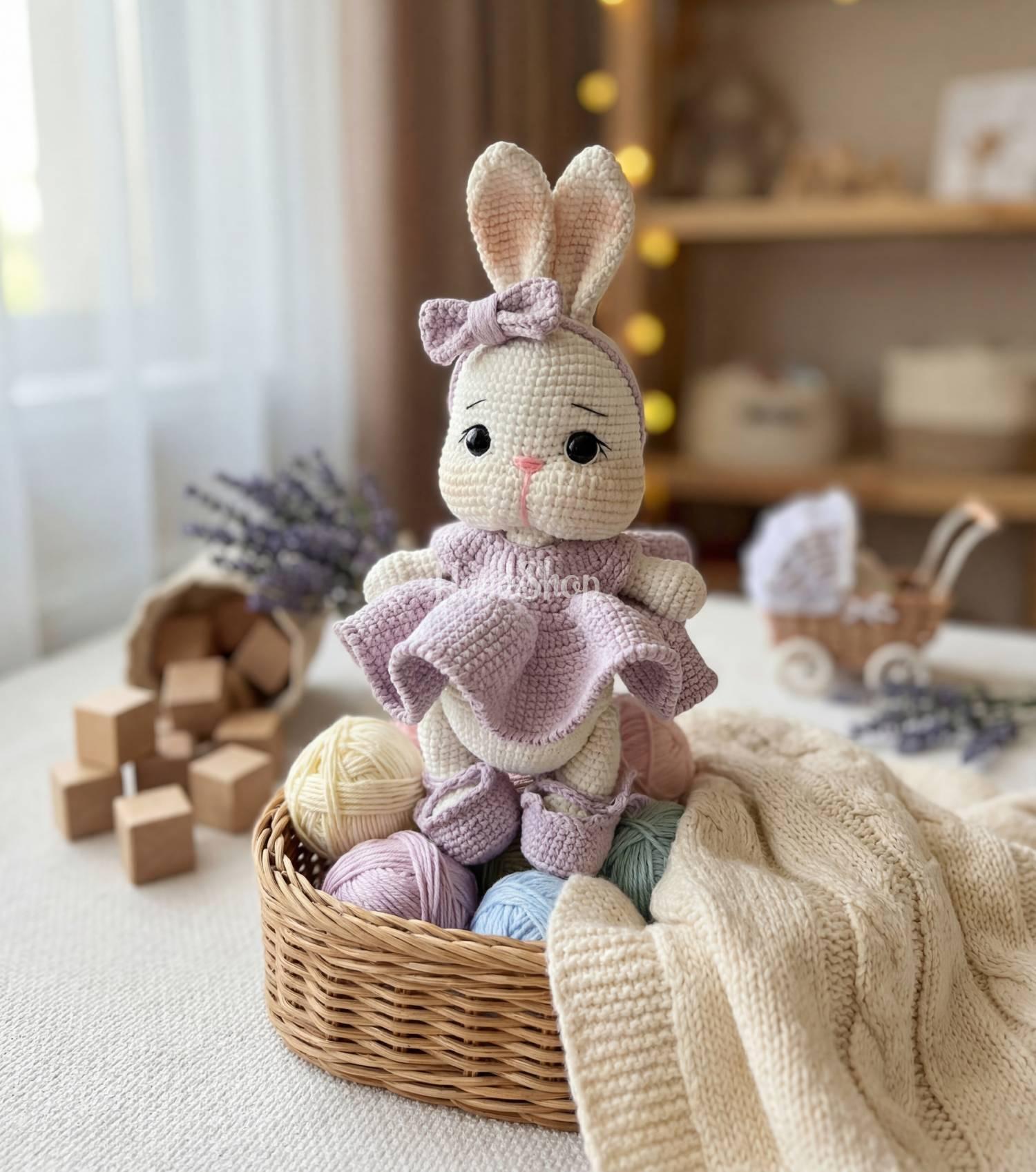 Особливості: іграшка в’язана зайчик – авторська дитяча іграшка зая своїми руками 23 см, що робить її особливо милою й стильною. Іграшка зайка у ліловій сукні та бантиком – стоїть і сидить тільки з підтримкою. Білий зайчик іграшка з рухомими ручками та ніжками. Іграшка в’язана гачком у біло-фіолетовій кольоровій гаммі з бавовняної пряжі. Іграшка тонована сухою пастелю, що додає м’якості та глибини кольору, а також робить кожну іграшку унікальною. Ця авторська іграшка зайка, створена вручну – справжній витвір мистецтва для малюків та колекціонерів. Це не просто іграшка біла зайка – це маленький друг, який стане чудовим подарунком для вашої дитини чи додасть атмосферу затишку у вашому домі. В’язана зайка – ідеальний подарунок для будь-якої важливої події: дня народження, свят або просто як прояв уваги до важливих людей у вашому житті. М’яка і приємна на дотик пряжа та рухливі частини дозволяють дітям розвивати дрібну моторику, а завдяки пастельним кольорам і елегантному вигляду зайчик стане також чудовим декором для кімнати. Цей зайчик виготовляється в єдиному екземплярі, тому кожна іграшка — це неповторний, авторський твір, який приносить особливу магію у ваш дім. Подаруйте радість разом із ніжним зайчиком, і він обов’язково стане на довгі роки вірним другом і улюбленцем вашої дитини!