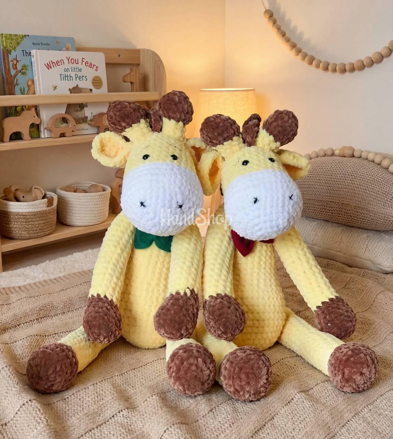 Особливості: м’які іграшки жираф ручної роботи – парочка великих авторських іграшок – великі жовті жирафки по 55 см з м’якої дитячої плюшевої пряжі. Іграшки жираф мають безпечне кріплення очей. Іграшки жирафа своїми руками сидять із підтримкою. В іграшках жираф – ручки та ніжки рухливі! Розвиваючі іграшки жираф стануть улюбленцем ваших діток! Пара плюшевих жирафок зроблено в образах – дівчинка та хлопчик! Завдяки яскравому жовтому кольору і веселому вигляду, ці жирафи стануть не лише улюбленцями вашої дитини, але й неперевершеною частиною декору в їхній кімнаті. Даруйте своєму малюкові радість і веселощі з нашими прекрасними іграшками жирафами! Великий розмір іграшок жирафів дає вашій дитині мати можливість обіймати їх, ласкати і гратися з ними, створюючи безмежну уявну казку. Їхні м’якість і приємний на дотик матеріал зроблять кожен момент з цими жирафами ще більш приємним і затишним. Ці іграшки жирафи відмінно підходять для розваг удома, на прогулянках або навіть у подорожі. Вони стануть вірними супутниками вашої дитини у будь-яких пригодах. Іграшки жирафки можуть бути весільними подарунками молодятам. Іграшки жирафки чудово доповнять будь-який інтер’єр!