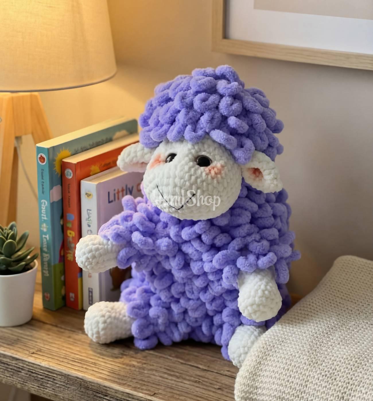Особливості: в’язані іграшки – мила іграшка звірятко ручної роботи – велика дитяча в’язана іграшка вівця із ніжної фіолетової плюшевої пряжі. Іграшка м’яка вівця велика 35 см. Вівця пухнаста лілова вівця іграшка гачком може сидіти самостійно! Наша авторська велика в’язана іграшка вівця заввишки 35 см відзначається своєю ніжністю і невимушеним шармом. Виконана в ніжних відтінках фіолетового кольору, ця пухнаста вівця гачком стане прекрасним товаришем для вашого малюка. Вона має приємну на дотик текстуру, що зробить кожне обіймання теплим і затишним. Найпримітнішою рисою цієї вівці є її здатність сидіти самостійно, даруючи безліч можливостей для творчої гри та уявних історій. Іграшка лілова вівця буде ідеальним подарунком для дітей, які цінують м’якість, милозвучність і неповторність в іграшках.