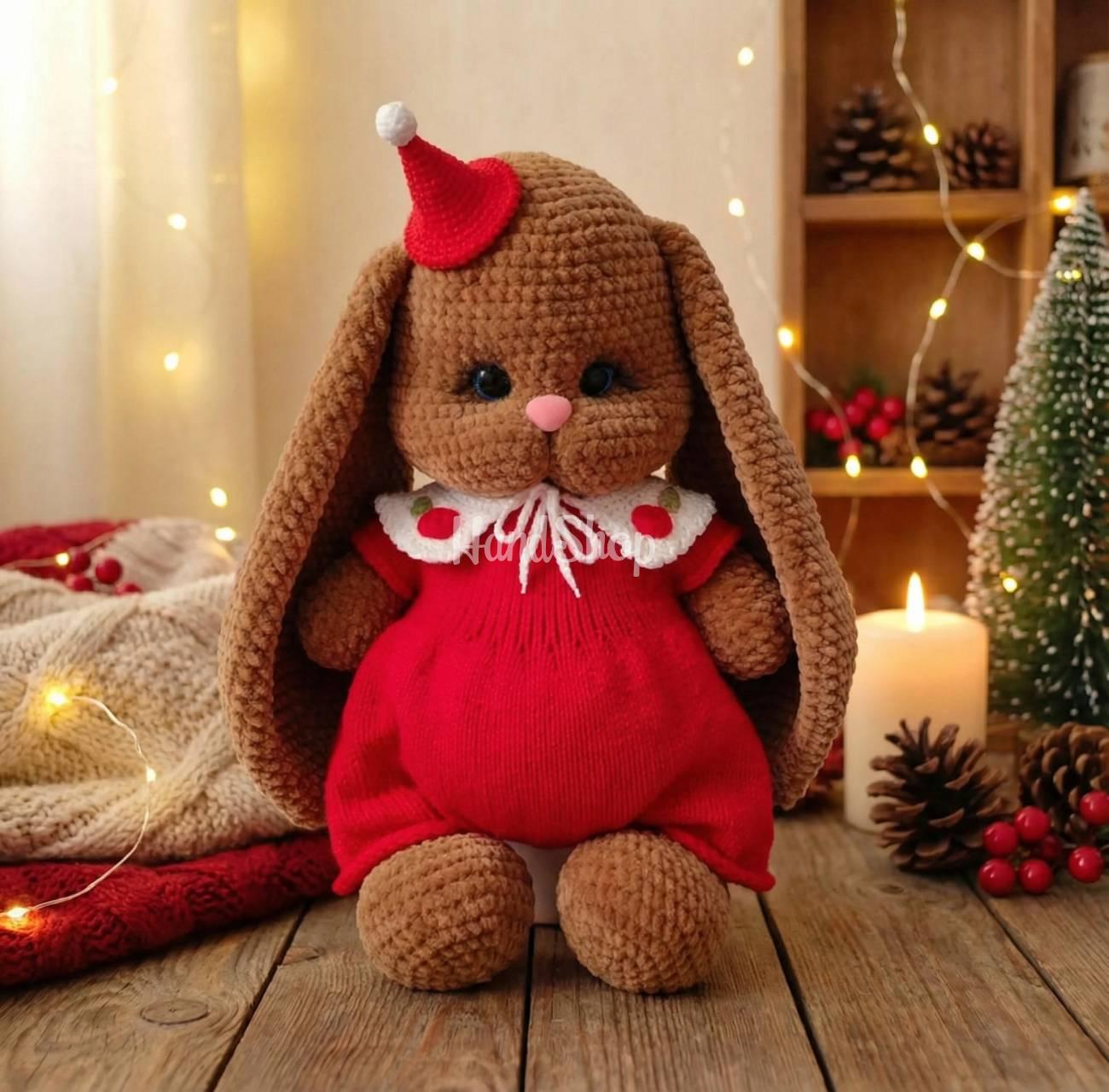 Особливості: іграшки зайчики ручної роботи – новорічний зайчик м’яка іграшка своїми руками в червоному в’язаному комбінезоні. Іграшка кролик коричневий зайчик може і сидіти, але основне положення – стоячи з опорою! Різдвяний великий зайчик іграшка з рухомими ручками та ніжками. Зайка з довгими вушками сувенірна іграшка – в’язані іграшки гачком 35 см. Дитячий коричневий зая кролик виконаний з м’якої гіпоалергенної плюшевої пряжі з новорічним ковпаком. Мила красива м’яка іграшка зайчик у в’язаному червоному комбінезоні та в’язаному білому комірці. Іграшка кролик зайка новорічний створений з увагою до деталей та з любов’ю, він має приємну текстуру ідеально підходить для ніжного обіймання. Ця іграшка зайка має відмінний дизайн, що дозволяє йому не лише сидіти зручно, а й стояти з опорою, даруючи дитині багато радісних моментів. Цей кролик зайчик стане чудовим доповненням до вашого святкового декору або теплим подарунком для малечі. Його великі довгі вушка і милий вигляд не залишать байдужими ні дітей, ні дорослих! Новорічний зайчик 2026 – це не просто іграшка, це маленька частинка свята, яка буде приносити радість протягом усього року!