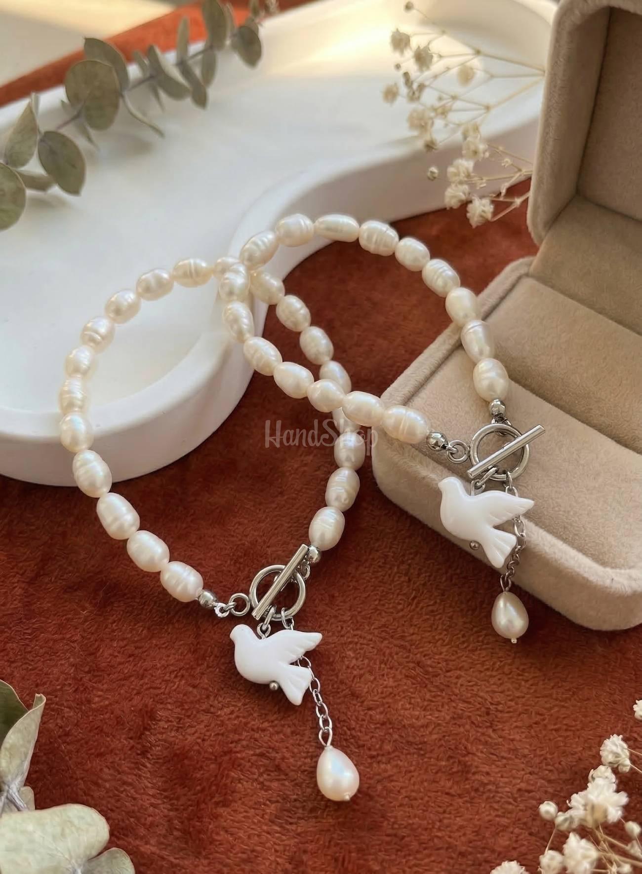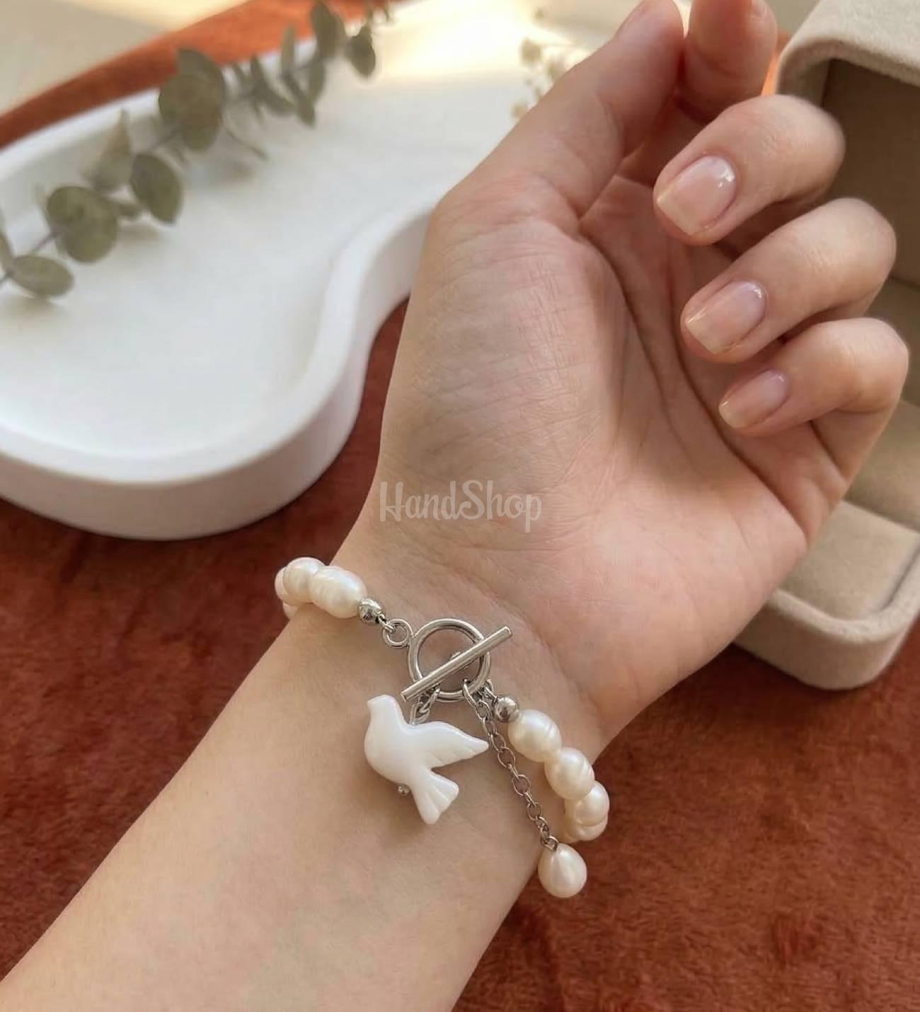 Особливості: прикраси ручної роботи – авторський браслет з річними перлами та білою голубкою миру з полімерної глини. Прикраси з полімерної глини та перлів – це неповторний витвір, який поєднує елегантність, вишуканість та глибокий символізм. Жіночий браслет до 17 см з річними перлами та білою пташкою з полімерної глини на гіпоалергенній фурнітурі під СРІБЛО. Цей браслет з перлів стане прекрасним акцентом для будь-якого образу – від вечірніх суконь до повсякденного стилю. Браслет виглядає вишукано та патріотично, підкреслюючи важливість миру та краси у нашому житті. Цей авторський браслет з перлів та полімерної глини – ідеальний вибір для тих, хто цінує індивідуальність та оригінальність у моді. Він стане чудовим подарунком на свято або ж вишуканим доповненням до вашого образу.