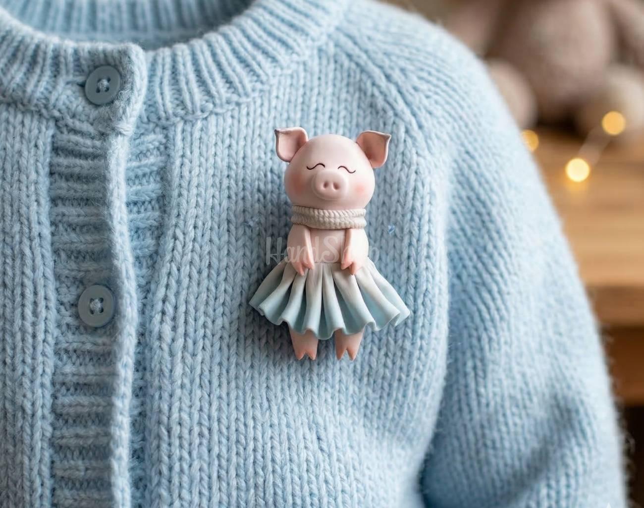 Особливості: авторські сувенірні дитячі брошки – миле порося дівчинка невеликого розміру 4,5 см у вигляді прикраси брошки ручної роботи. Ця маленька, але дуже стильна брошка у вигляді свині стане чудовим сувеніром або подарунком для ваших близьких. Виготовлена вручну з полімерної глини, брошка має розмір лише 4,5 см і виглядає неймовірно деталізовано. Плоска форма і металеве кріплення ззаду дозволяють зручно носити її на одязі, прикрашати сумки або навіть використовувати як елемент декору в інтер’єрі. Кожна дитяча брошка свинка виготовляється вручну, тому вона не схожа на інші. Наша авторська брошка мила свинка, виготовлена з полімерної глини, обов’язково здивує і порадує ваших рідних та друзів, незалежно від віку. Дитячу брошку свинку можна прикріпити на будь-який одяг, сумку або рюкзак. Ідеально підходить для святкових і повсякденних образів. Цей сувенір брошка порося у сукні додає нотку радості і тепла в будь-яку обстановку. Подаруйте маленьке диво своїм коханим та близьким – новорічна брошка свинка стане символом святкового настрою та радості на весь рік!