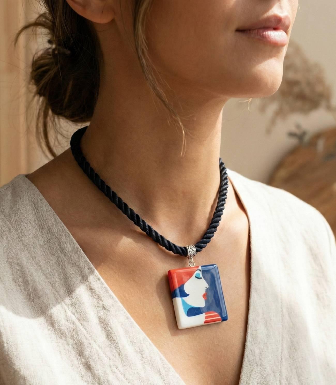 Особливості: прикраси з дерева для жінок – великий квадратний дерев’яний кулон розміром 5 х 5 см ручного розпису із зображенням сучасної паризької художниці Малики Фавре. Жіночі прикраси з дерева – кулон з дерева Malika Favre – розписані акриловими фарбами (нетоксичними, на водній основі) та покриті 6 шарами фінського нетоксичного лаку. Прикраси з дерева – кулон з дерева ручної роботи Malika Favre на довгому шовковому шнурі – 50 см – виглядають жіночно! Ідеальний подарунок для тих, хто любить поєднувати мистецтво, стиль та природу в одному аксесуарі. Підкресліть свою індивідуальність з кулоном Malika Favre – коли прикраса стає витвором мистецтва. Стильна прикраса з дерева для тих, хто цінує унікальність, мистецтво та натуральні матеріали. Даруйте оригінальні та ексклюзивні подарунки – кулон з дерева – прикраси з дерева для жінок!