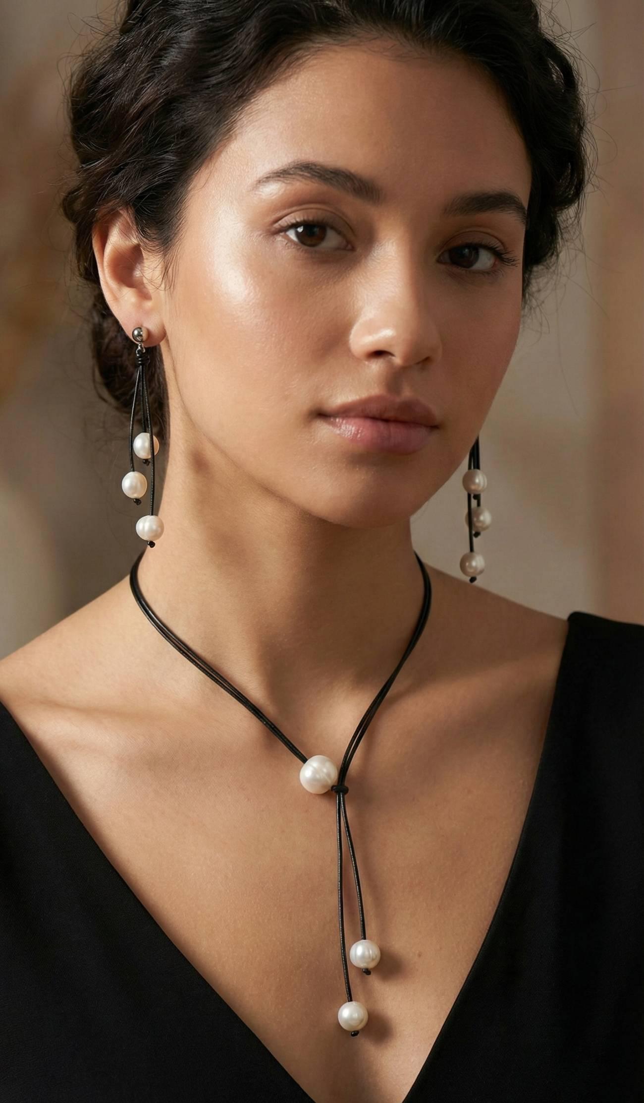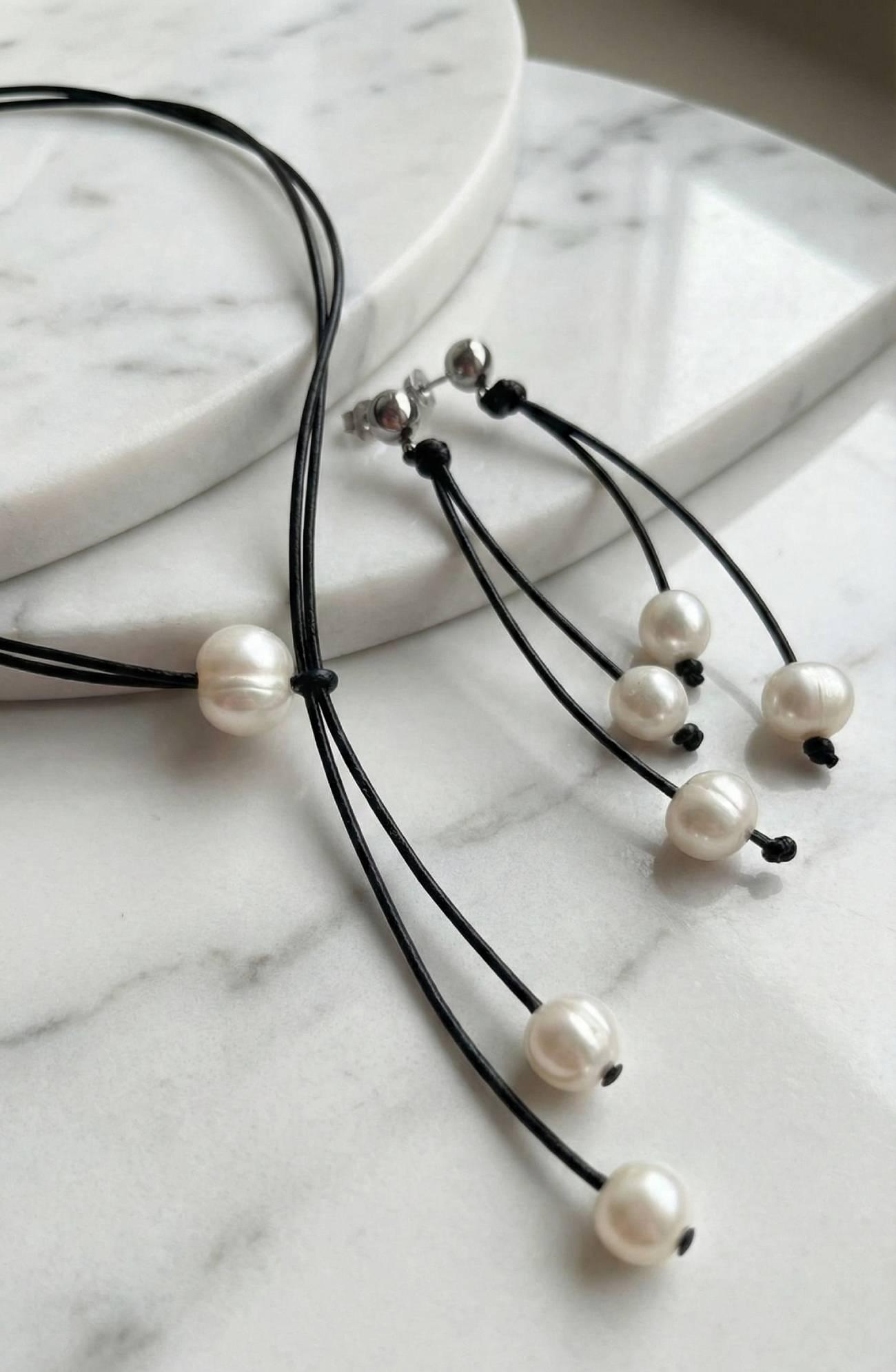 Особливості: авторські прикраси ручної роботи – авторське кольє на довгому чорному шнурі зі шкіри та довгі сережки з натуральними перлами. Довге намисто кольє з перлами – дуже вишукано та елегантно під ваш любий образ. Кольє на довгому шкіряному шнурі, що дозволяє створювати різні варіанти носки, від простих до більш витончених. Це кольє з перлинами – втілення витонченості та природної краси. Жіночі сережки довжиною 7 см з натуральними перлами – унікальний аксесуар, який підкреслить вашу індивідуальність і додасть елегантності будь-якому образу. Сучасне поєднання класичних перлин і шкіри надає прикрасі стильного та модного вигляду. Жіноче кольє з перлами та сережки – ідеально підходять для вечірніх виходів, святкових подій чи додадуть елегантності вашому повсякденному образу. Це кольє з сережками стане чудовим доповненням до вашого гардеробу і подарує вам впевненість у собі. Авторські прикраси ручної роботи з перлами – це завжди особливий, неповторний стиль, що підкреслює вашу індивідуальність та витонченість.