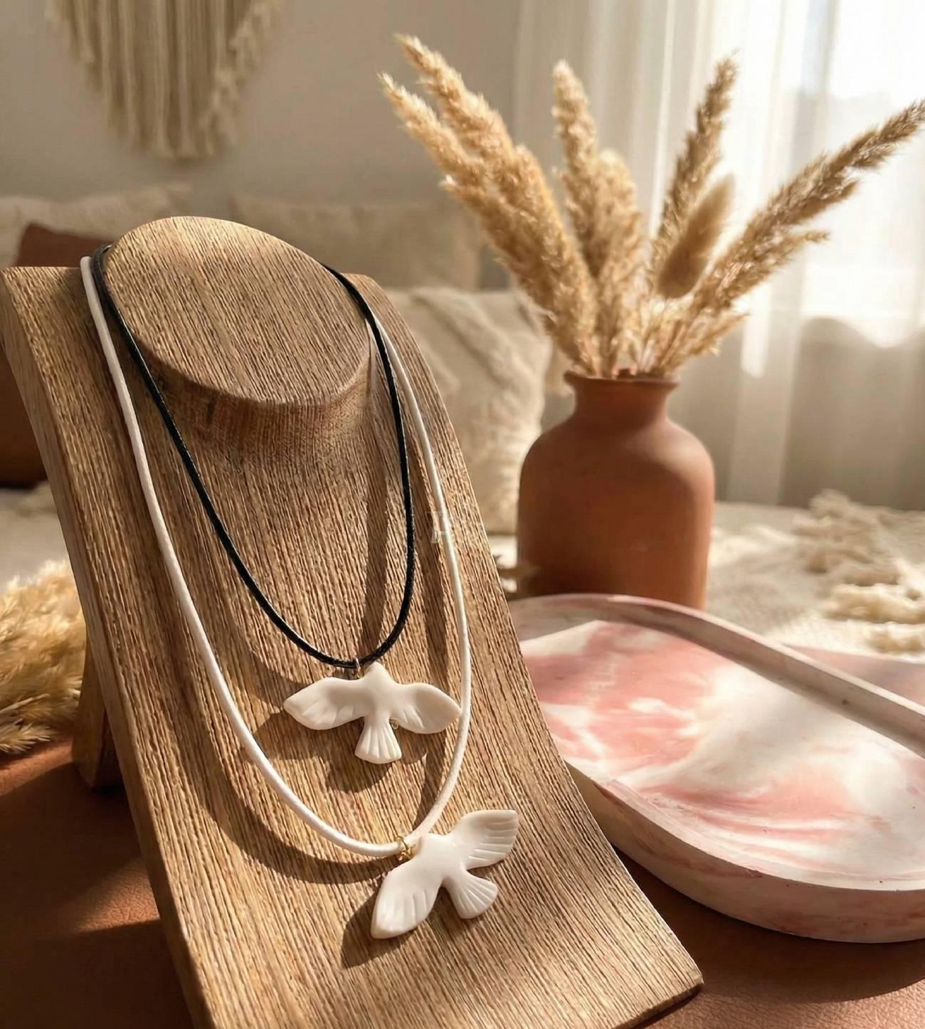 Особливості: прикраси ручної роботи – красивий кулон із полімерної глини з білою горлицею ручної роботи. Кулон голубка розміром до 4,5 см, покритий УФ смолою на довгому шнурку. Прикраси біжутерія кулон у вигляді білої голубки миру на гіпоалергенній фурнітурі – це красиво, модно та патріотично. Деталізовані білі голубки на кожному аксесуарі символізують мир, гармонію та вірність. Ці прикраси голубки підійдуть як на щоденне носіння, так і для особливих випадків, коли вам потрібно додати образу романтики та ніжності. Кожна горлиця виготовлена з особливою увагою до деталей, що робить її не просто прикрасою, а справжнім творінням мистецтва. Полімерна глина дозволяє зберігати природний блиск та кольори протягом тривалого часу. Цей кулон біла горлиця стане чудовим подарунком для близької особи або справжньою прикрасою для вас самих, доповнивши ваш стиль нотками романтики та вишуканості.
