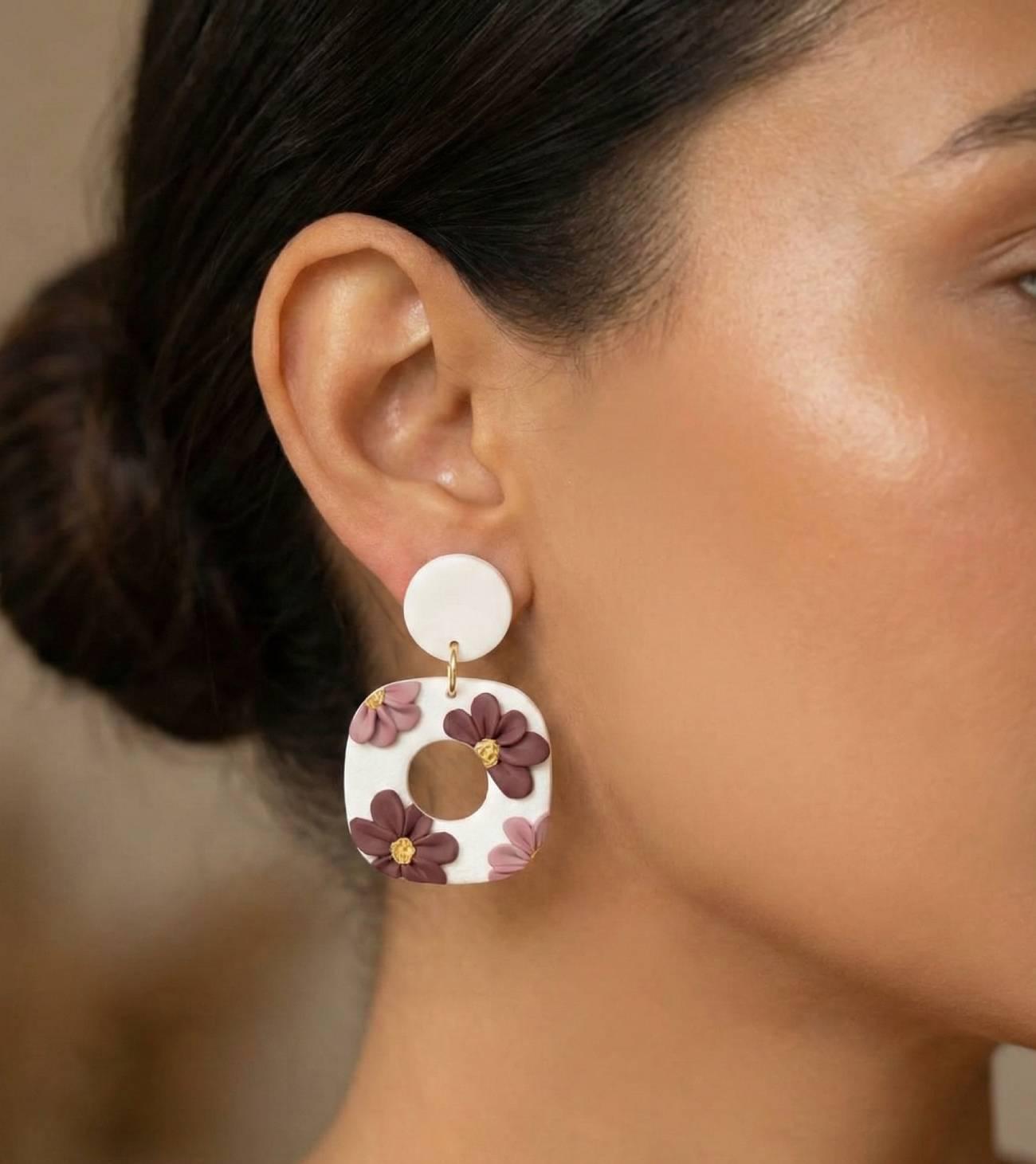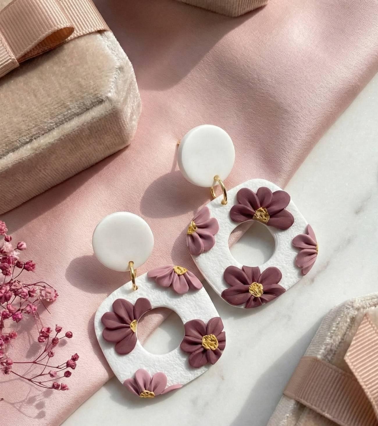 Особливості: сережки ручної роботи – стильні квітокові сережки білі геометричної форми ромби з полімерної глини. Жіночі красиві сережки своїми руками середнього розміру довжиною 4,5 см із полімерної глини. Прикраси сережки біжутерія на фурнітурі – нержавіюча сталь – це дуже красиво, вишукано та модно. Білі довгі сережки прикрашені об’ємними квіточками в пудрово-бордовій гаммі на металевій фурнітурі кольору – золото. Їх білий колір, поєднаний з об’ємними квіточками в пудрово-бордовій гаммі, створює витончений контраст, який привертає увагу. Жіночі сережки мають вишукану фурнітуру під золото, що додає їм особливого шарму. Завдяки використанню нержавіючої сталі для фурнітури, ці сережки є не лише красивими, а й довговічними. Квіткові сережки підходять як для повсякденного носіння, так і для особливих подій, додаючи вашому образу елегантності та сучасного шарму. Ідеальний вибір для стильних жінок, які цінують якість, витонченість і моду.