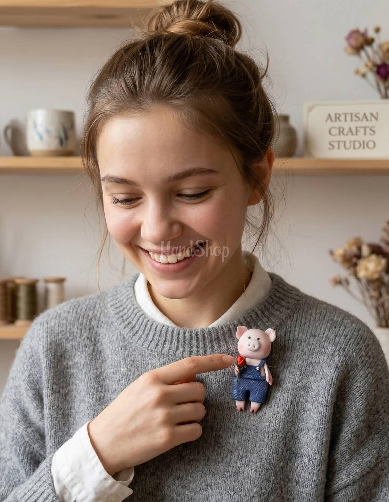 Особливості: сувенір магніт свиня ручної роботи – романтичний новорічний сувенір порося невеликого розміру 4,5 см. Магніт порося 2026 виконаний з полімерної глини у святковому чоловічому образі справжнього Джентльмена – символу дня всіх закоханих 14 лютого. Сувенір має плоску форму з металевим магнітом на звороті, що дозволяє прикріпити його до холодильника, дошки для нотаток або іншої металевої поверхні. Свиня магніт з глини можна використовувати як подарункові сувеніри коханим та рідним. Подарунки полімерна глина – магніт свинка порадує і зачарує не лише дитину, а й дорослу! Магніт у вигляді свині виглядає дуже стильно і оригінально. Його святковий чоловічий образ з яскравими деталями створює атмосферу романтики та тепла, і додає чарівності будь-якому інтер’єру. Цей порося-магніт стане чудовим доповненням до вашого новорічного або валентинівського декору, а також чудовим подарунком для ваших близьких, особливо для тих, хто любить оригінальні та милі сувеніри. Подаруйте своєму дому і серцям ваших рідних шматочок святкової магії з цим милим поросятком-джентльменом!