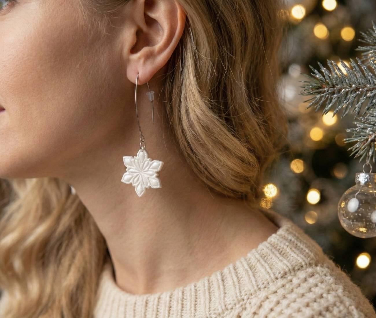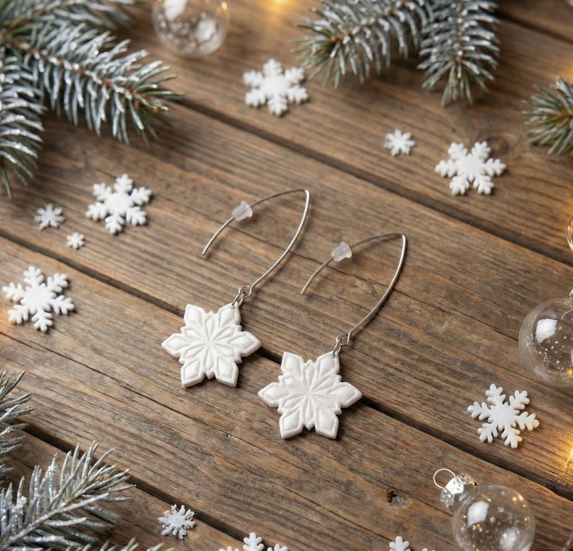 Особливості: сережки ручної роботи – стильні новорічні сережки з полімерної глини в формі білих зимових сніжинок. Кожна пара сережок сніжинки – це маленький шедевр, створений з полімерної глини, яка відтворює природну красу зимових сніжинок. Мініатюрність дозволяє легко комбінувати їх з будь-яким образом. Ці сережки новорічні сніжинки втілюють в собі жіночність та стиль, надаючи вашому вигляду елегантність та тепло. Вони ідеально підходять для різних заходів, від повсякденного образу до вечірнього виходу. Кожна деталь виготовлена вручну з використанням високоякісних матеріалів. Ви отримаєте не просто прикрасу, а унікальний аксесуар, який надихне вас і оточуючих. Фурнітура з нержавіючої сталі робить ці сережки не лише стильними, але й довговічними. Вони будуть радувати вас своєю красою протягом тривалого часу.