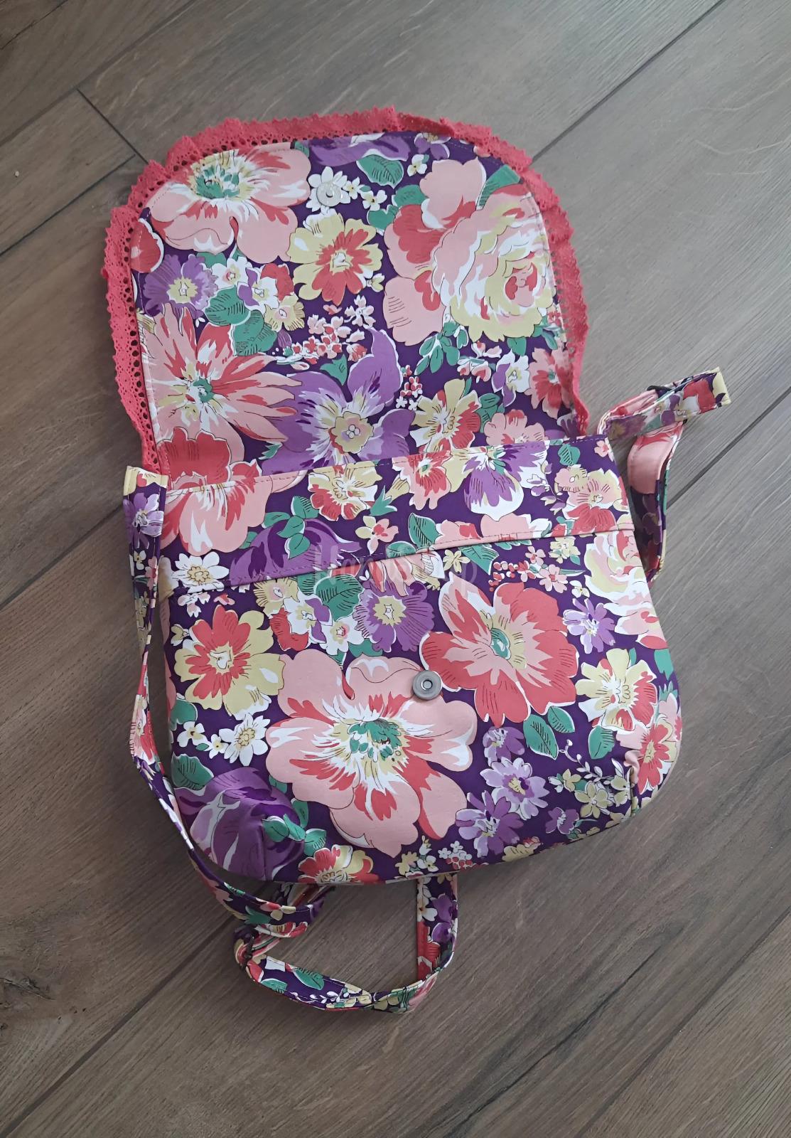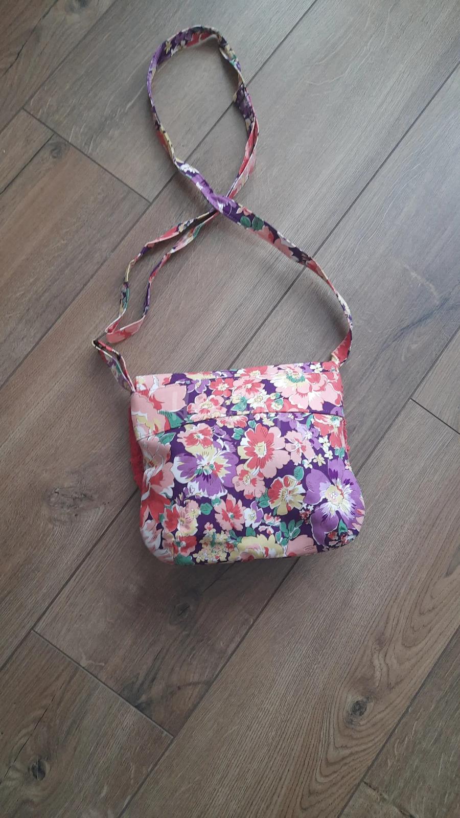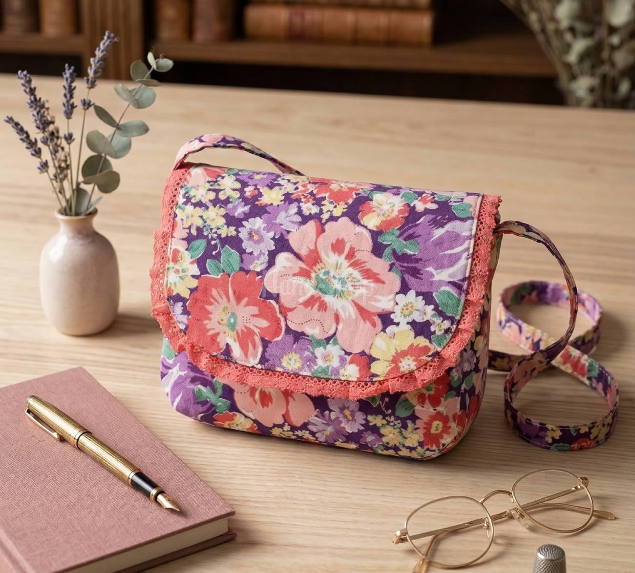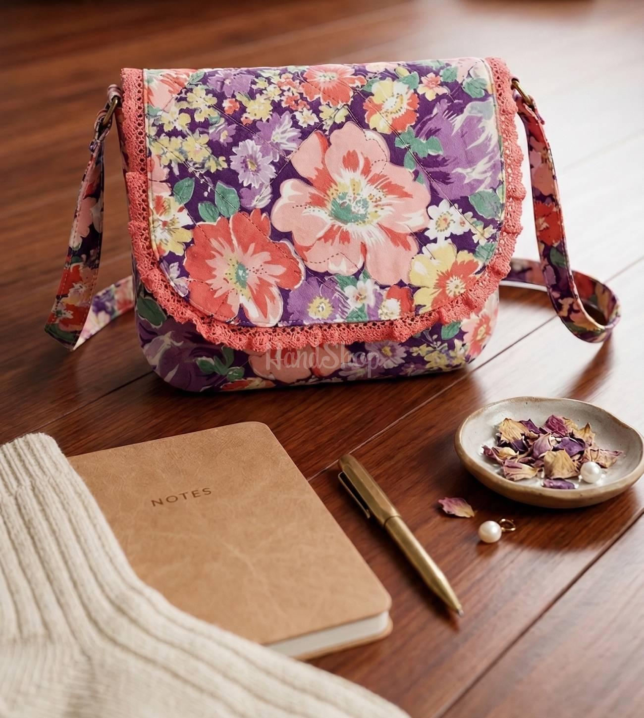 Особливості: авторська сумочка з тканини – оригінальна жіноча сумка на довгій шлейці ручної робот з принтом квіти. Стильна, яскрава та по-справжньому унікальна – ця авторська сумочка створена для жінок, які цінують індивідуальність і витончені деталі. Поєднання насиченого квіткового принту в коралово-фіолетових відтінках із ніжним кораловим мереживом створює легкий романтичний настрій і додає образу особливого шарму. Жіноча текстильна сумочка має зручну форму та продумані розміри 26 х 21 х 6 см, що дозволяють взяти з собою все необхідне, зберігаючи акуратний і стильний вигляд. Довга регульована шлейка до 140 см забезпечує комфортне носіння через плече, а надійна металева кнопка гарантує зручність у щоденному використанні. Щільна підкладка допомагає сумочці тримати форму та не деформуватися навіть при активному використанні. Усередині текстильна сумочка має просторе відділення на блискавці та зручну кишеню для дрібниць, щоб усе необхідне завжди було під рукою. Легка, практична й водночас витончена – ця сумочка стане ідеальним вибором для прогулянок, зустрічей і щоденного використання, додаючи вашому образу жіночності, стилю та унікальності.