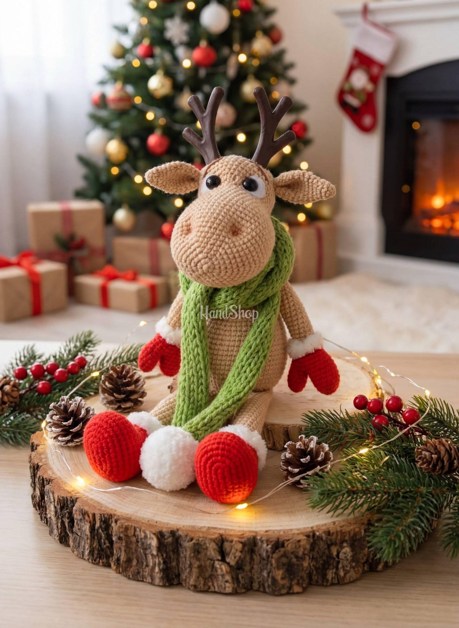 Особливості: м’які іграшки своїми руками авторські – святкова новорічна іграшка лось олень 2026. Олень Рудольф самостійно не сидить – тільки з підтримкою, що додає йому ще більше чарівності! Великий Рудольф лось олень у новорічному святковому образі 2026 року з розміром до 30 см – ідеальний для святкових декорацій або подарунків. Іграшка олень із зеленим шарфом – знімається. Очі та рожки пластмасові у оленя – на безпесному кріпленні, що гарантують довговічність і зручність використання. Рудольф олень лось новорічний – найдовгоочікуваніший, найбажаніший і найпотаємніший подарунок у новорічні свята рідним! Ми пропонуємо вам новорічний зворушливий подарунок 2026 – олень Рудольф лось! М’яка іграшка лось – мило і креативно! Наш великий лось-олень Рудольф – це не лише чудова іграшка, а й яскравий акцент вашого новорічного декору. Заввишки до 30 см, він створений для того, щоб принести святкову атмосферу в будь-який дім! Авторська в’язана іграшка олень Рудольф – це не просто іграшка, а справжній символ тепла та радості новорічних свят!