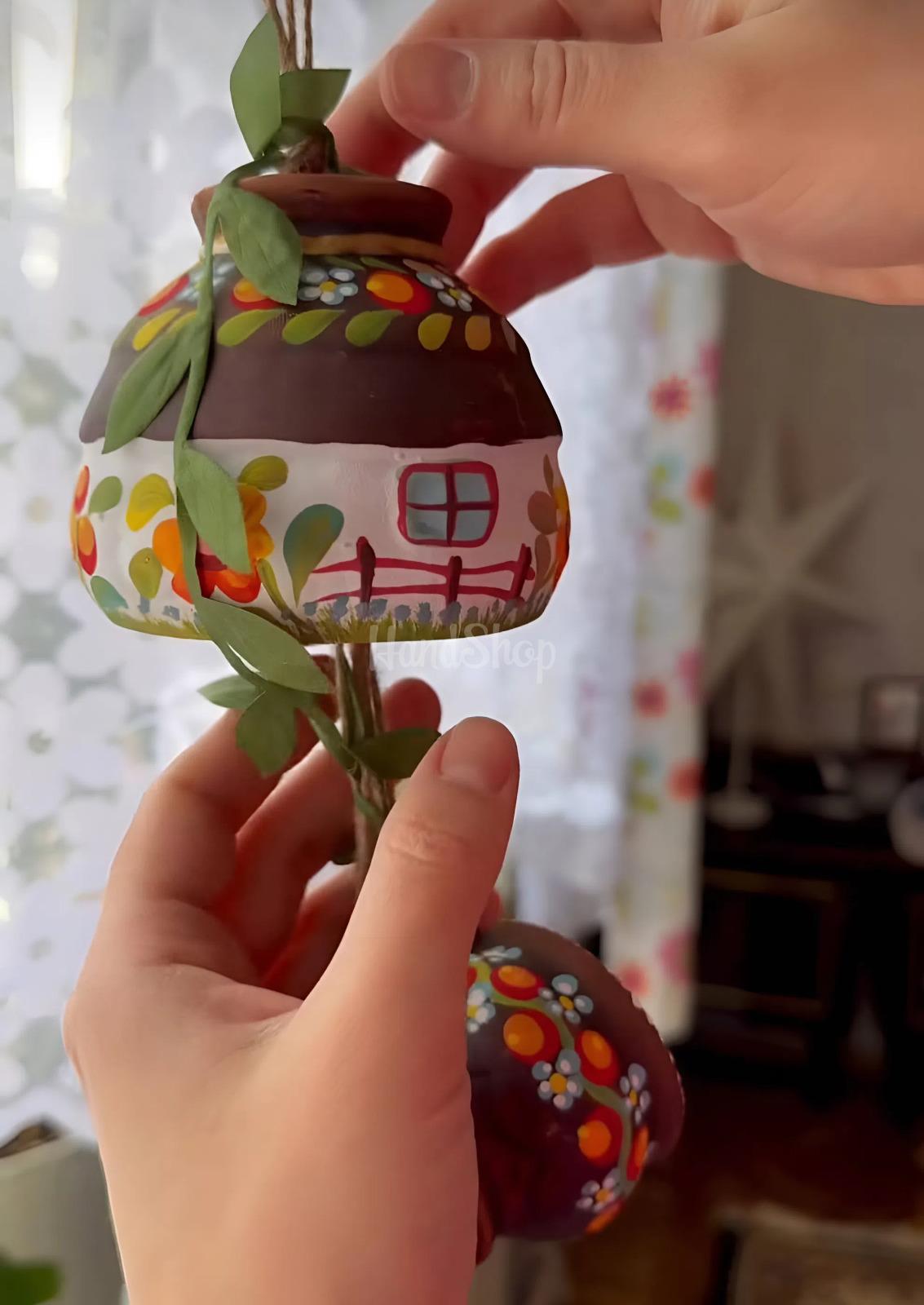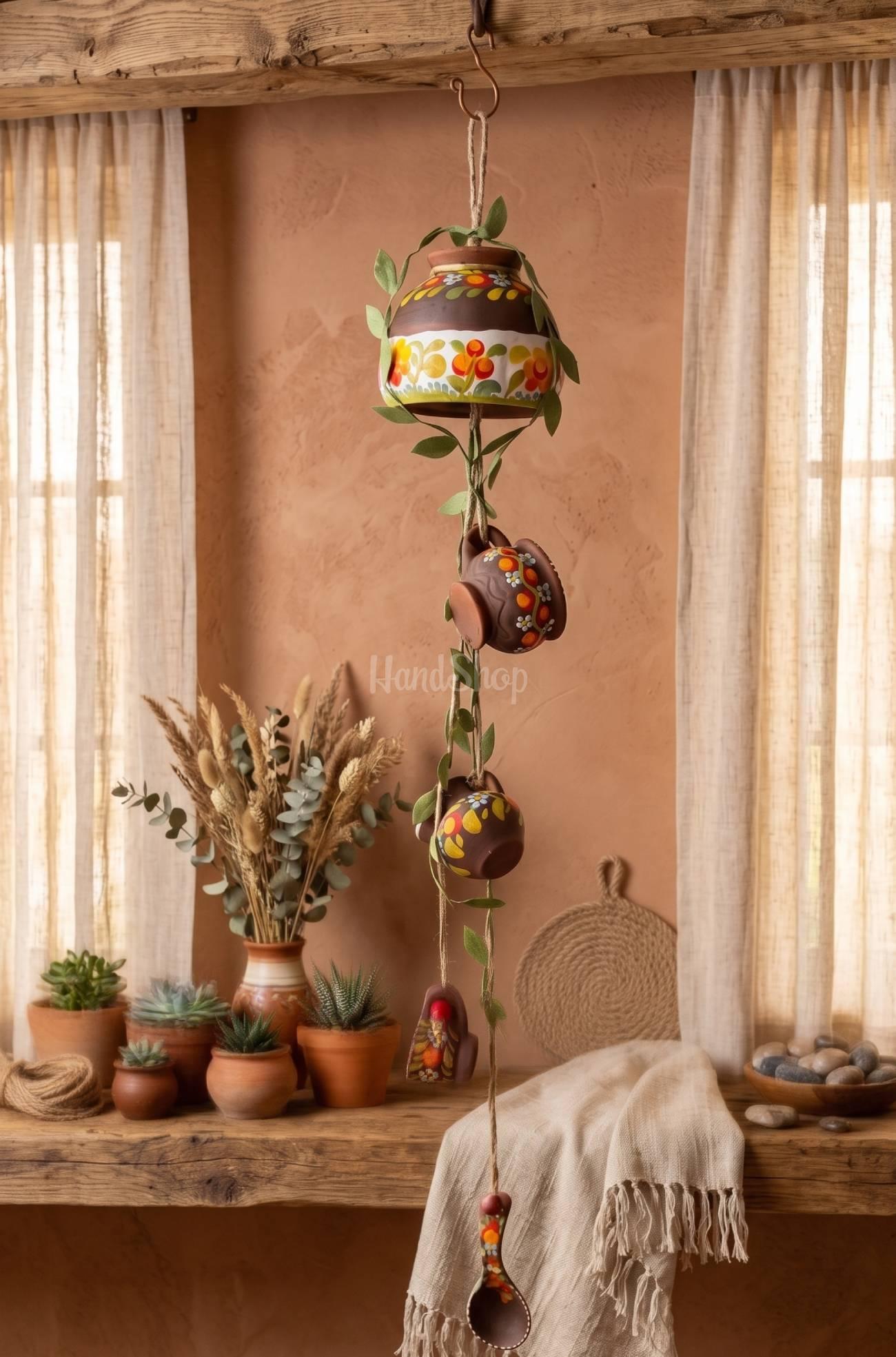 Особливості: авторська керамічна інтер’єрна підвіска українська хатинка – кераміка власного виробництва з петриківським розписом. Підвіска виготовлене з натуральної червоної глини – матеріалу, який здавна використовувався українськими майстрами. Особливістю виробу є традиційна техніка обпалення в молоці, що надає кераміці глибокого, теплого відтінку та природної фактури. Такий спосіб обробки не лише естетичний, а й підкреслює автентичність виробу. Кожна підвіска прикрашена ручним петриківським розписом – яскравим, живим і символічним. Квіткові орнаменти, плавні лінії та гармонійні кольори створюють відчуття руху й життя. Це не просто декор – це мистецтво, яке несе в собі настрій природи, радість і енергію. Розміри довгої підвіски 60-70 см роблять його помітним і стильним акцентом в інтер’єрі. Кожен виріб створюється вручну у власній майстерні – від формування глини до останнього мазка пензля. Це гарантує, що ви отримуєте унікальну річ, яка не має точних повторів. Такий український підвіс ідеально впишеться як у сучасний інтер’єр, так і в простір із етнічними елементами. Воно додає тепла, індивідуальності та культурної глибини, стаючи не просто прикрасою, а справжнім акцентом із характером. Авторська керамічна підвіска «Українська хатинка» – це не просто елемент декору, а справжній символ тепла, традицій і душевності, втілений у глині.