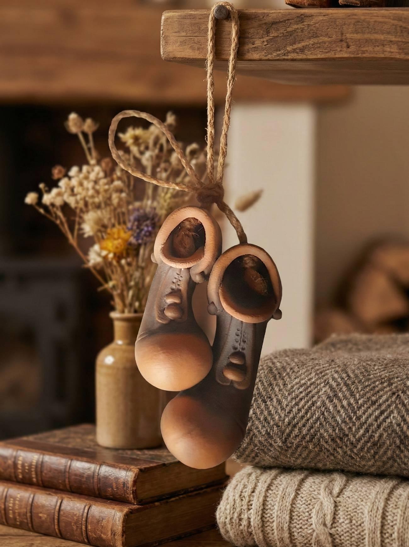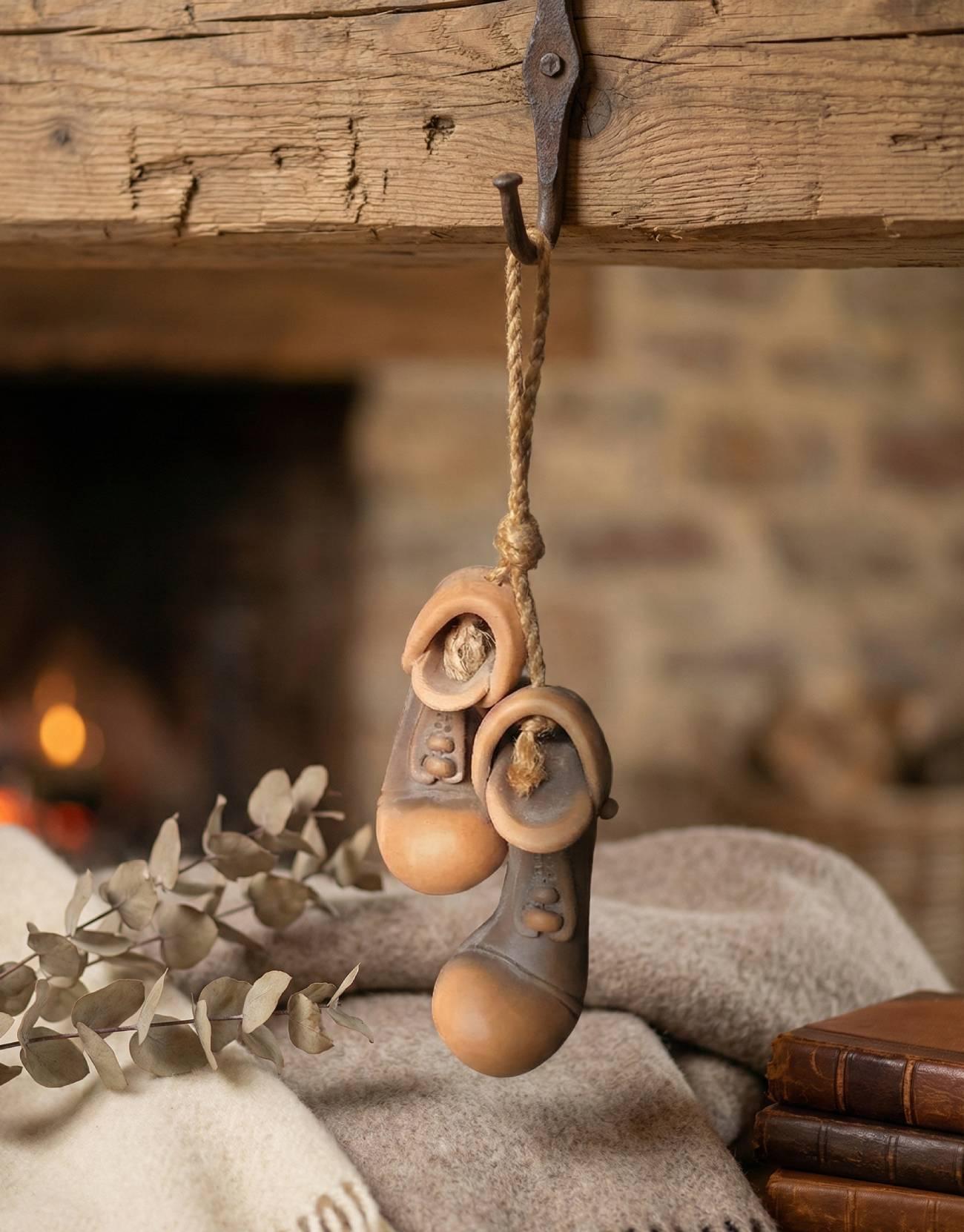 Особливості: сувенір кераміка ручної роботи – підвісні черевички пара ручної роботи з розмірами: один 6 х 2 см і другий 7 х 2 см, створені вручну з любов’ю до деталей. Сувеніри із кераміки черевички призначені для підвішування на стіну. Ці керамічні черевички виготовлені вручну, обпалені при температурі 1000 градусів, що забезпечує їхню міцність, довговічність і стійкість до зовнішніх впливів. Пара черевичків акуратно з’єднана натуральною джутовою мотузкою, яка додає композиції природного шарму та елегантності. Завдяки зручному підвісу сувенірні черевички ідеально підходять для декорування стіни, дверей або затишного куточка вашої оселі. Керамічні сувенірні черевички створюють атмосферу тепла та затишку й символізують добробут і домашній комфорт. Наша авторська керамічна пара черевичків стане оригінальним подарунком для близьких. Кераміка черевички гармонійно доповнить інтер’єр у стилі еко, рустик або кантрі. Черевички з кераміки – ідеальні для підвішування на стіну, вони створюють атмосферу затишку та приносять позитивну енергетику у будь-яку оселю. Кожна пара – унікальна, адже виготовлена вручну, тому може мати легкі індивідуальні відмінності, що лише підкреслюють її автентичність. Оберіть керамічні черевички – маленький, але особливий акцент, який наповнить ваш дім позитивною енергетикою та теплом.
