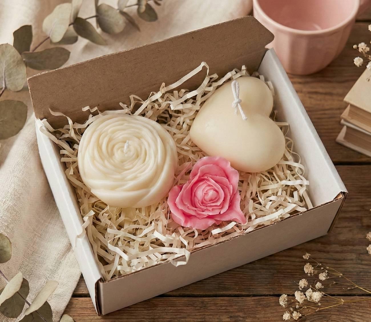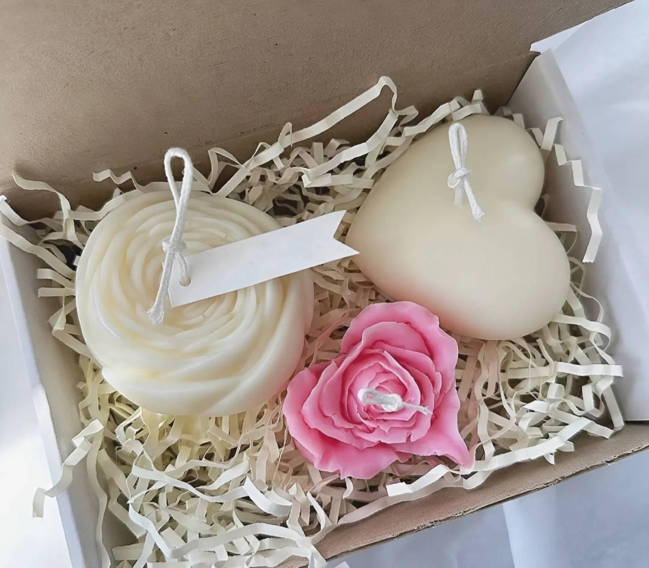 Особливості: авторські вироби з воску – набір з трьох свічок сердечок та троянди, які стануть ідеальним акцентом для затишного вечора або особливого подарунка вашій коханій. Свічка квітка троянда кремового кольору – до 8 см. Свічка біле гладке серце – 7,7 х 6,5 см, вага 90 г, час горіння до 5 годин. Свічка рожеве серце троянда – 6 х 5 см, 3 см висотою та вагою до 40 г. Кожна свічка ручної роботи виготовлена повністю вручну з натурального соєвого воску. Особлива деталь – аромат на ваш вибір свічки. Під час ЗАМОВЛЕННЯ ВИ САМОСТІЙНО ОБИРАЄТЕ АРОМАТ, який наповнить простір теплом, ніжністю або пристрастю саме у вашому стилі. Цей романтичний набір свічок сердець наповнуватиме кімнату атмосферою тепла та затишку.